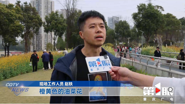现场工作人员赵轶介绍说,“我们公园从入口区域,最开始呈现的就是橙黄色的油菜花,这种油菜花要比普通的油菜花颜色更加艳丽,向内延伸就是经过改良的桃色花海,往前面走就是混播区,有乳白、淡紫还有橙黄交织在一起,更有文艺清新的感觉。”