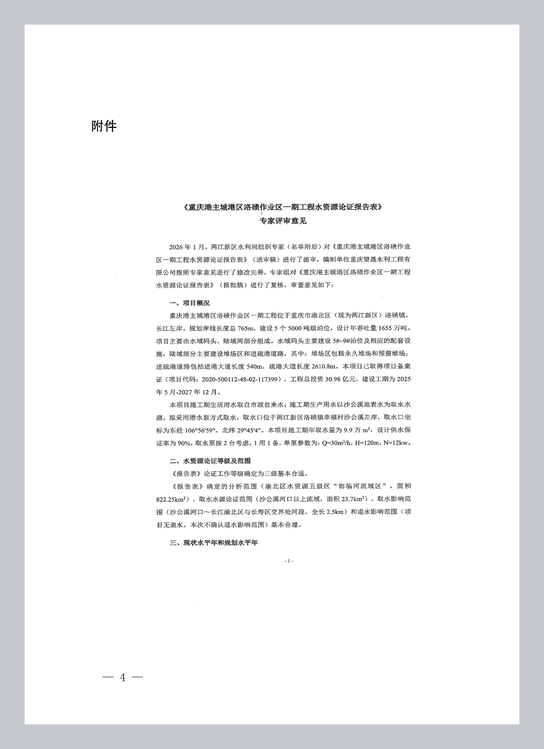 附件:重庆港主城港区洛碛作业区一期工程水资源论证报告表专家评审意见