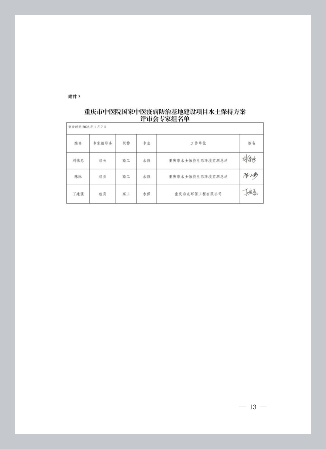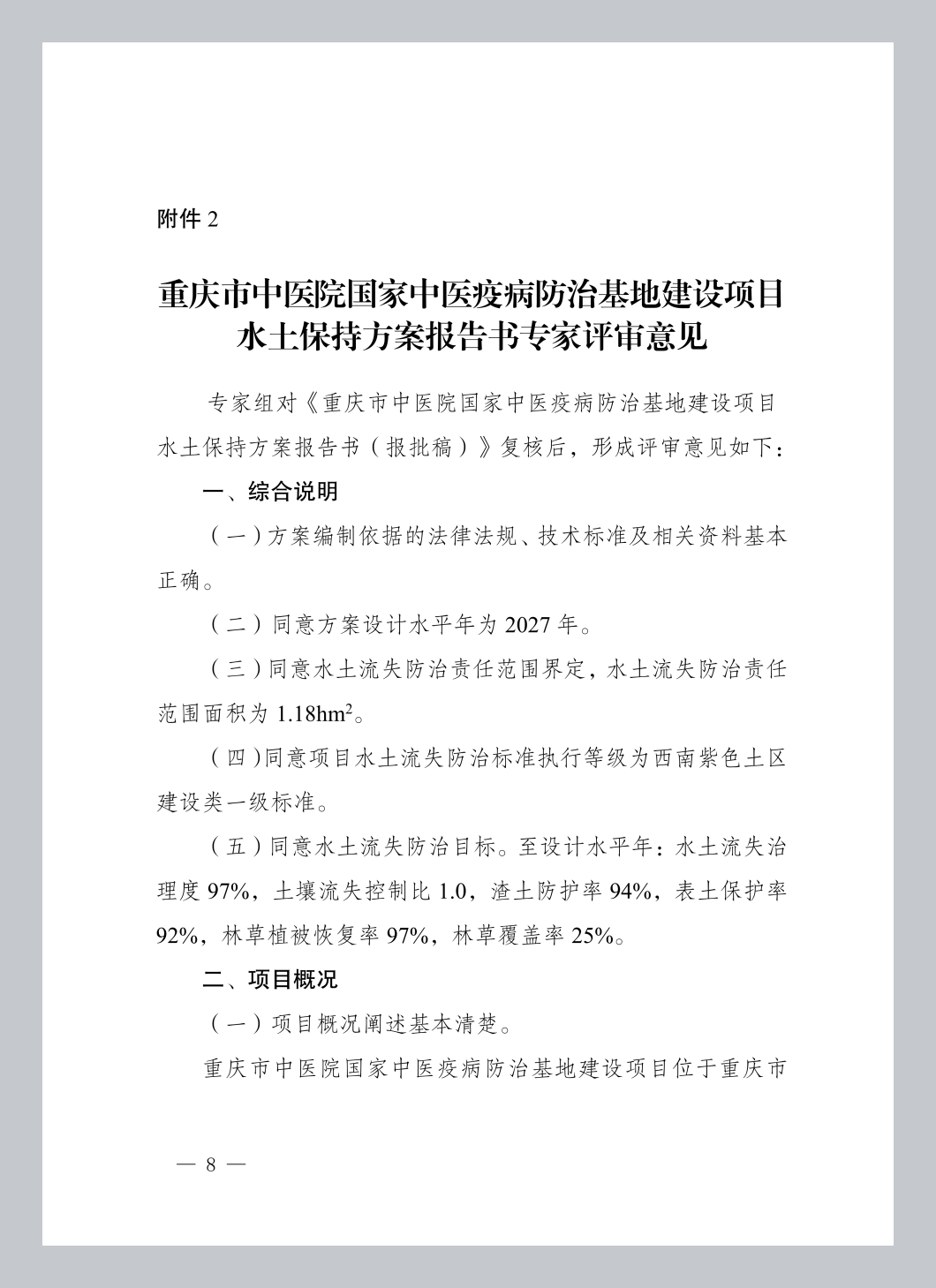 2.重庆市中医院国家中医疫病防治基地建设项目水土保持方案报告书专家评审意见