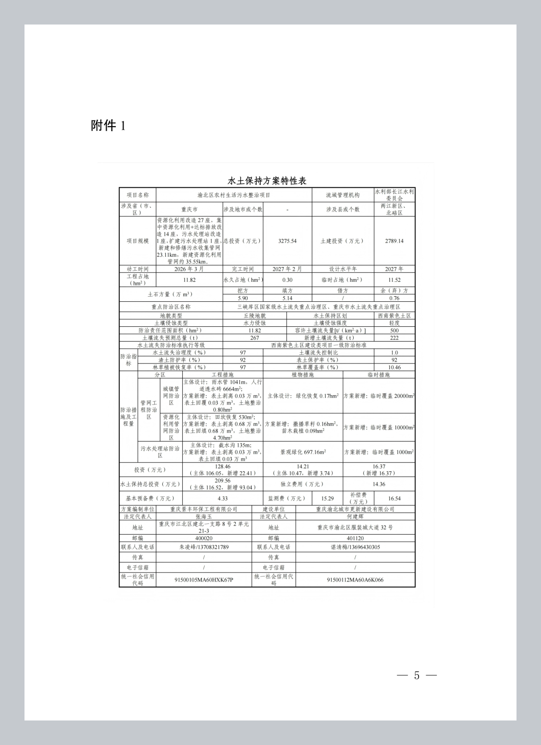 附件:1.渝北区农村生活污水整治项目水土保持特性表