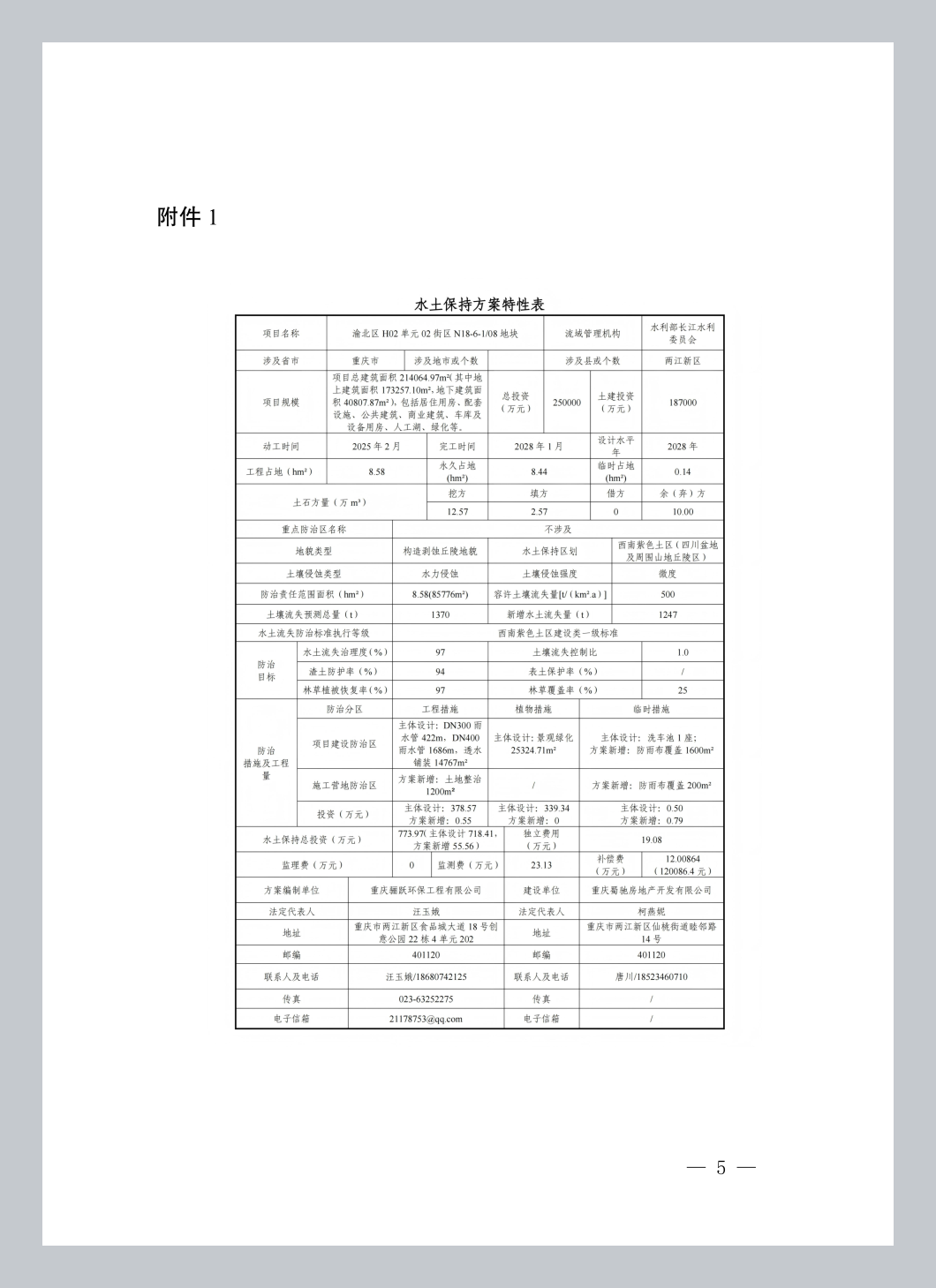 附件: 1.渝北区H02单元02街区N18-6-1/08地块水土保持特性表