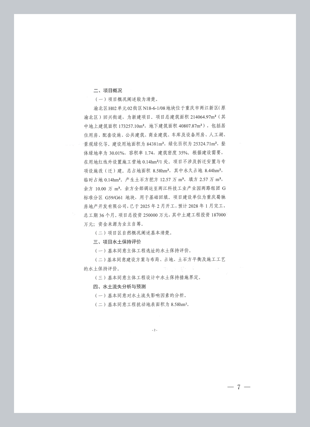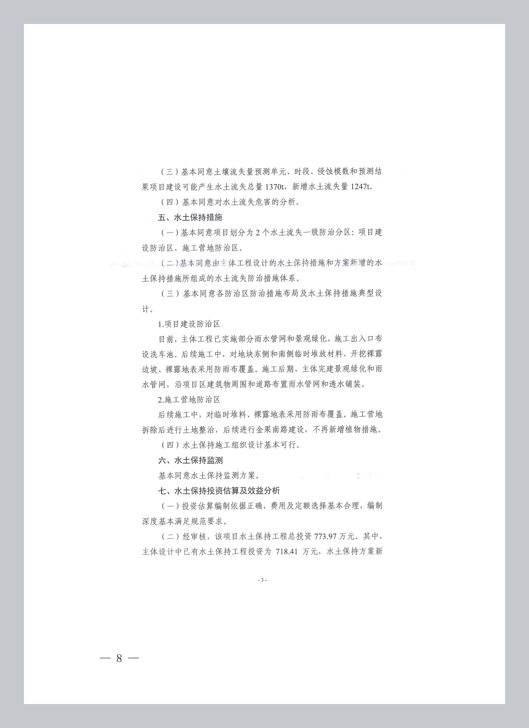 (三)同意水土流失防治责任范围界定,水土流失防治责任范围面积为8.58hm2。