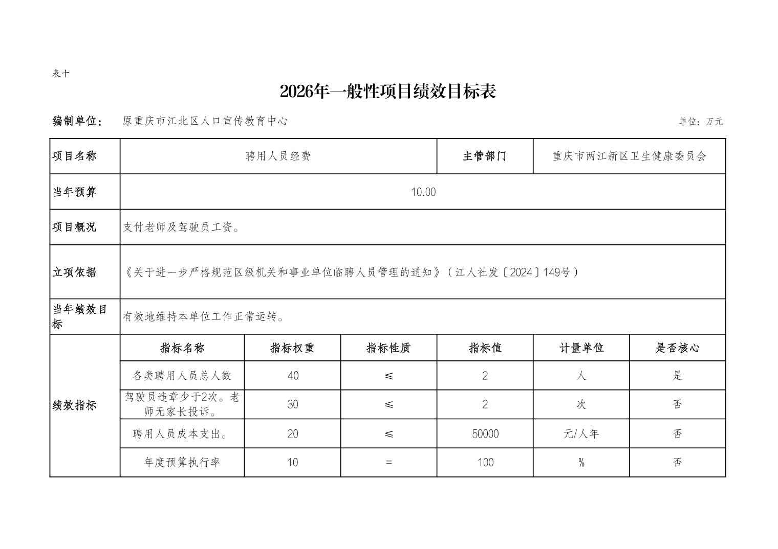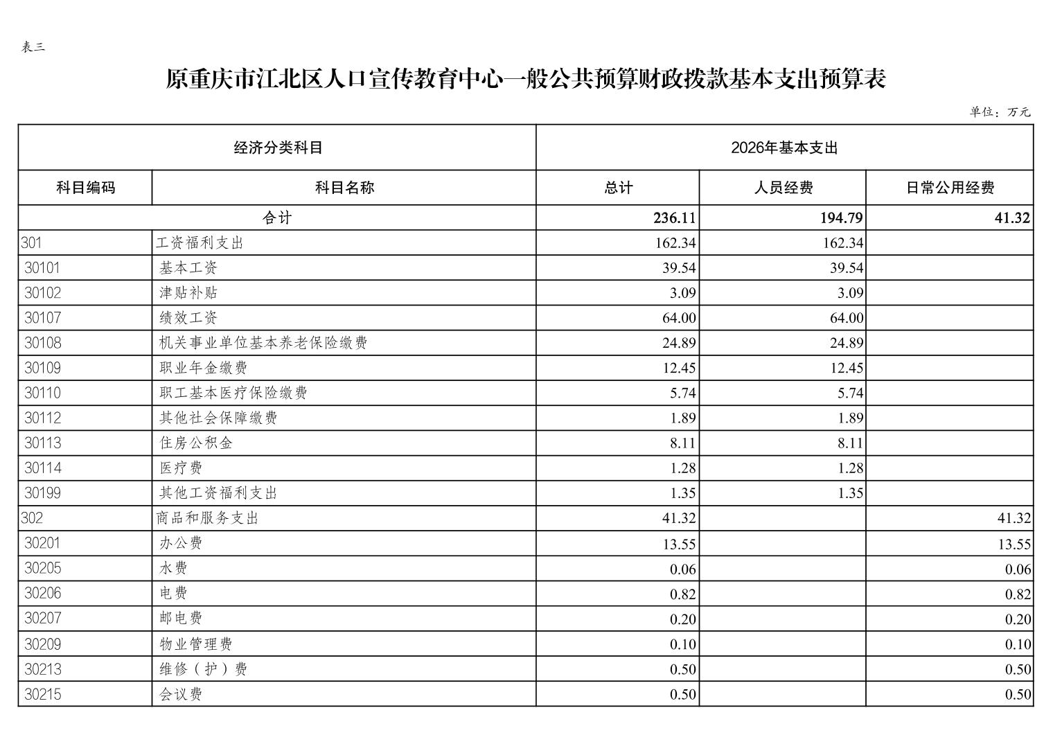 原重庆市江北区人口宣传教育中心2026年单位预算情况说明