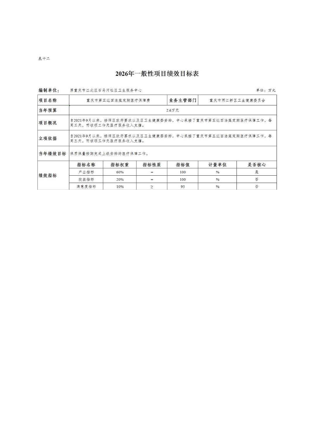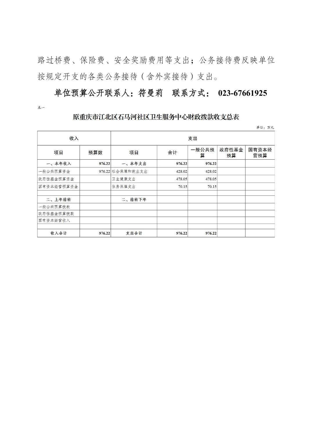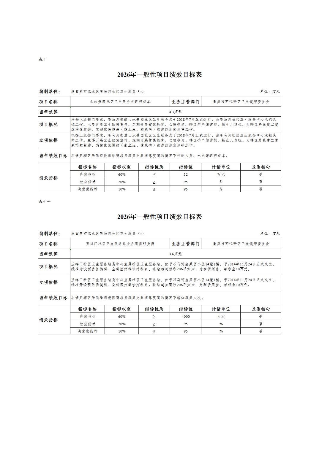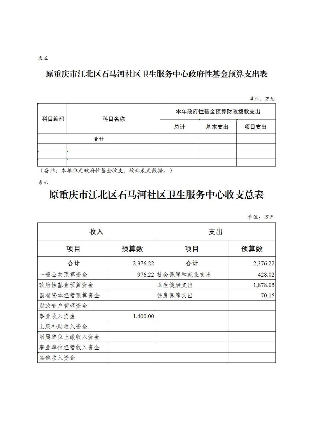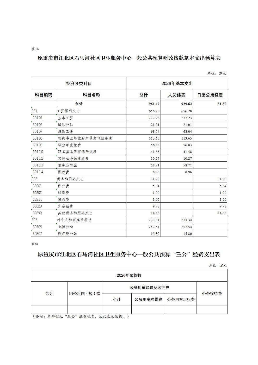 原重庆市江北区石马河社区卫生服务中心2026年单位预算情况说明