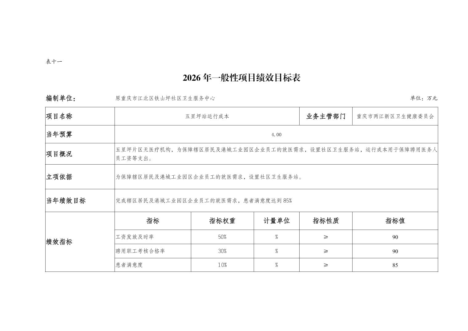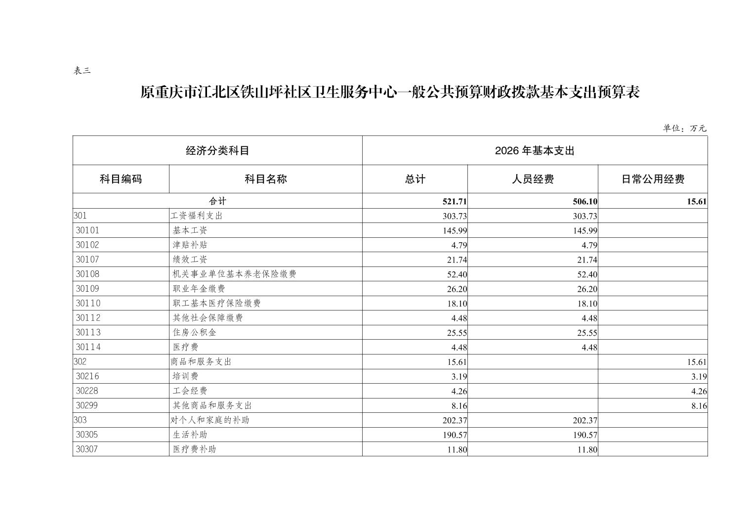 原重庆市江北区铁山坪社区卫生服务中心2026年单位预算情况说明