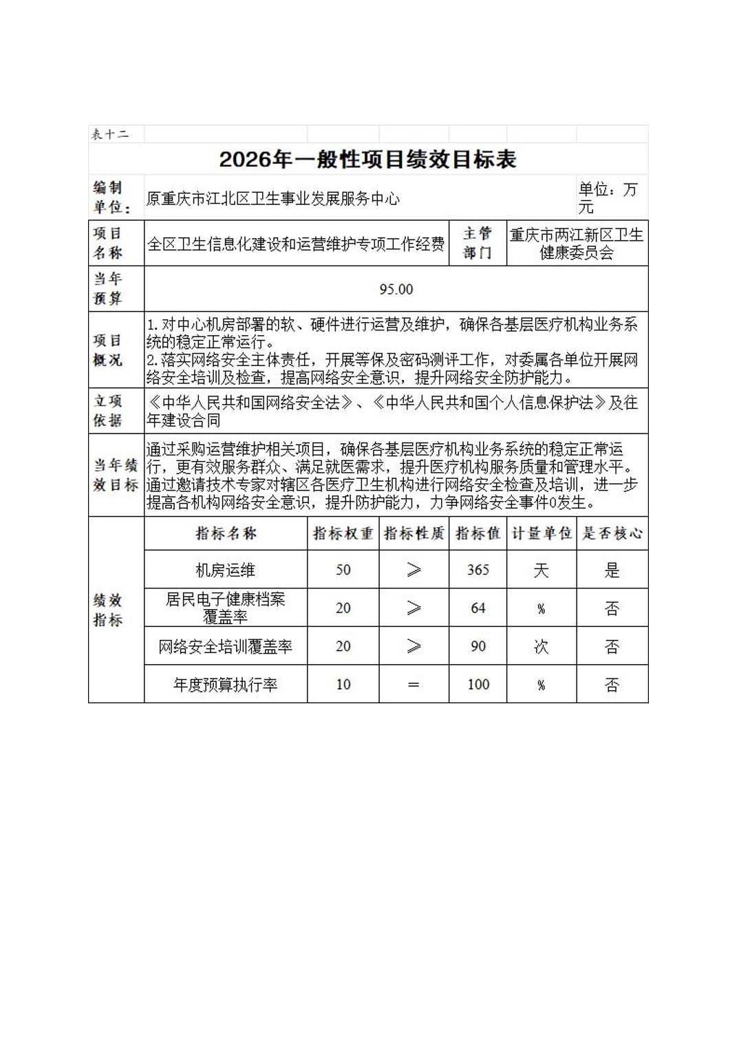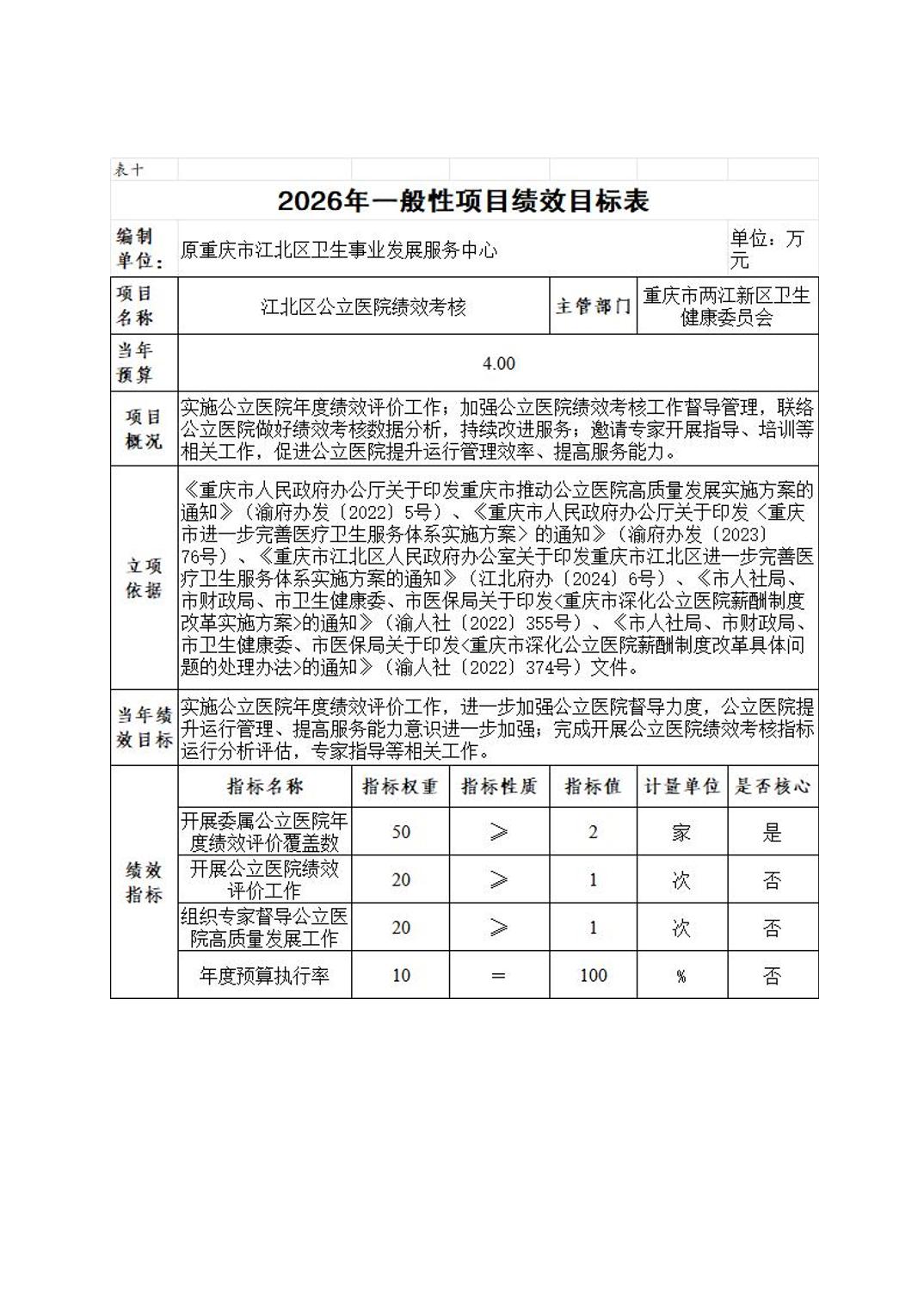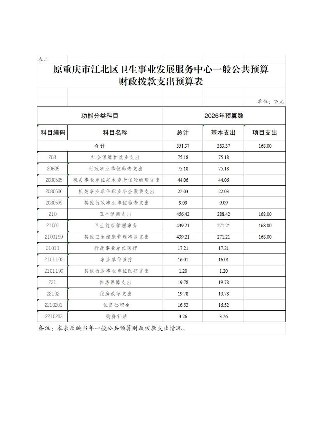 原重庆市江北区卫生事业发展服务中心2026年单位预算情况说明