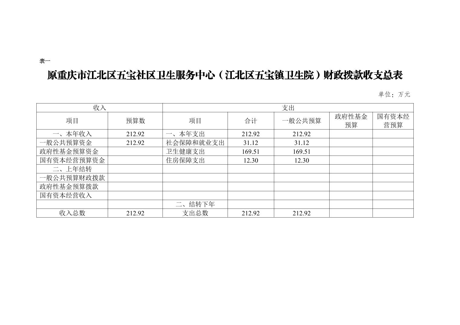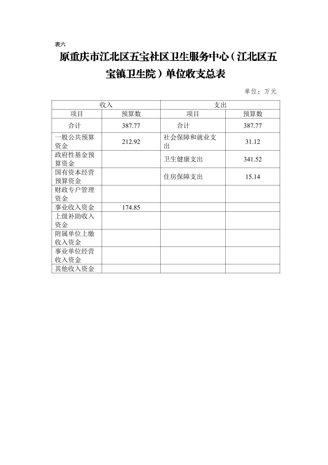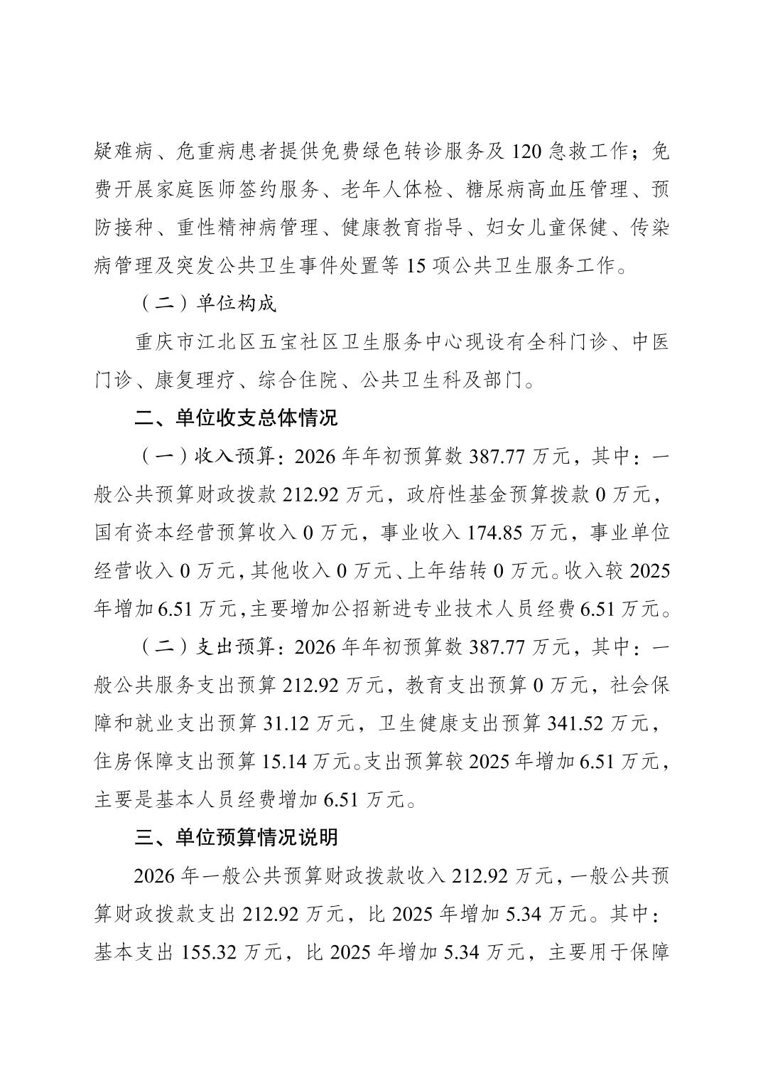 原重庆市江北区五宝社区卫生服务中心(江北区五宝镇卫生院)2026年单位预算情况说明