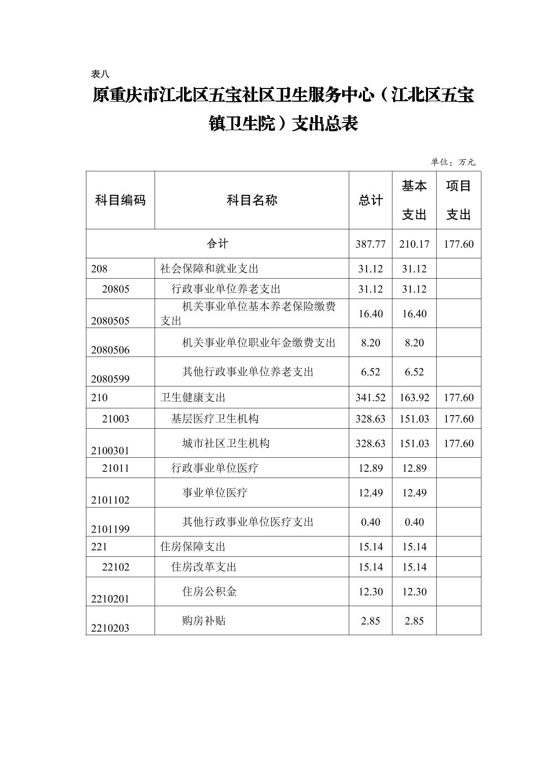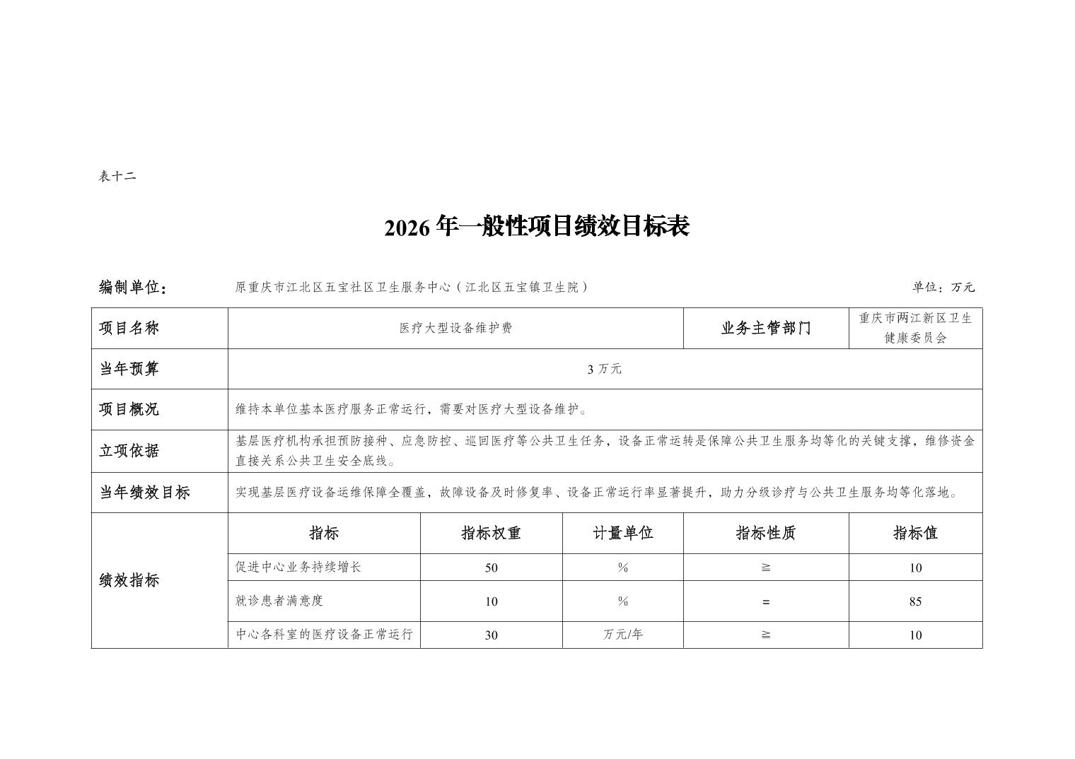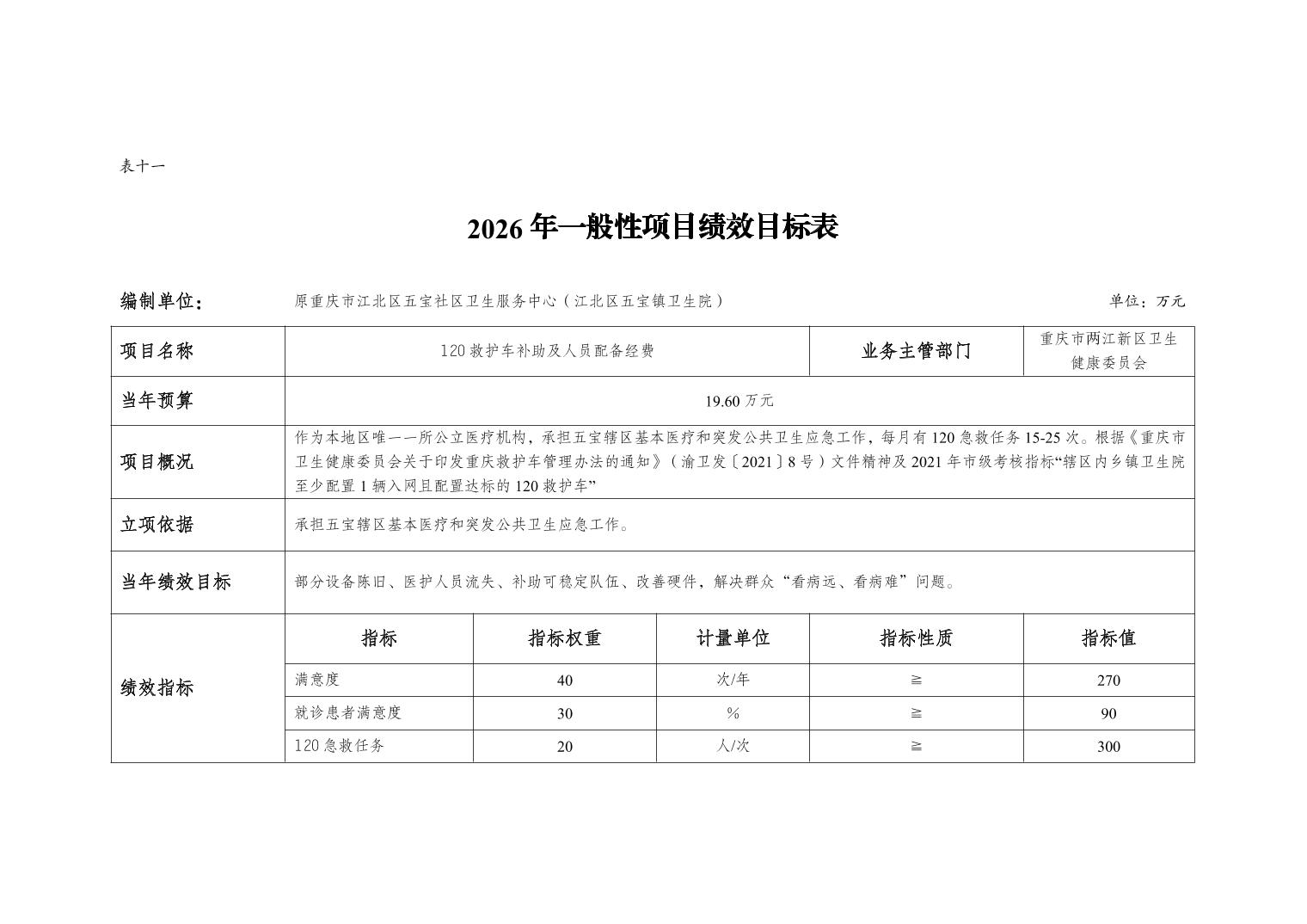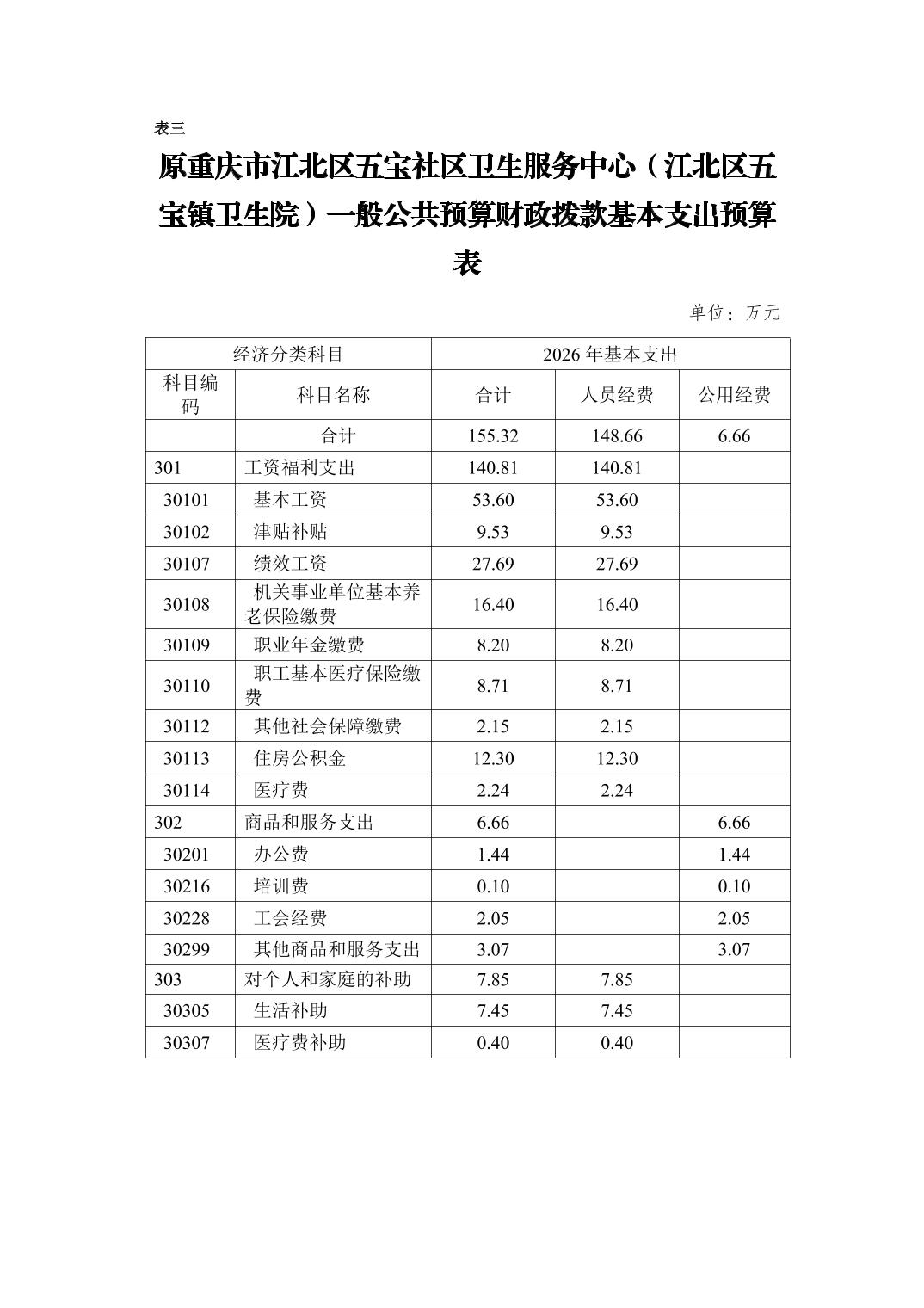 原重庆市江北区五宝社区卫生服务中心(江北区五宝镇卫生院)2026年单位预算情况说明