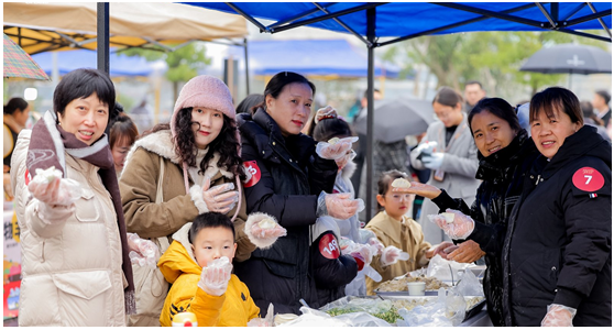 活动现场,40张圆桌铺陈开社区的温情脉络。主办方精选了20道融合传统与创意的佳肴:从象征团圆的八宝饭到寓意“年年高”的年糕,从本地特色腊味到孩子们喜爱的卡通造型点心,每一道菜品都承载着对美好生活的期许。居民们举杯相庆,畅谈家常。