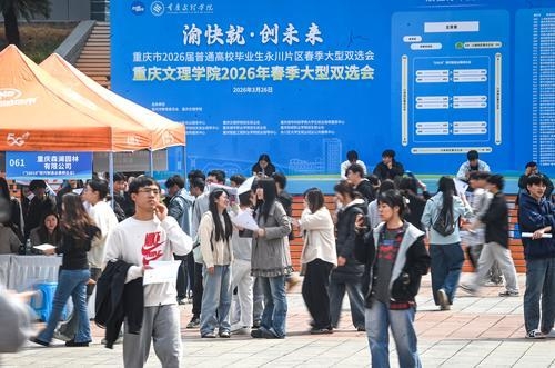 3月26日,“渝快就·创未来”重庆市2026届普通高校毕业生永川片区春季大型双选会在重庆文理学院红河校区举行。与往届双选会不同的是,本次双选会邀请240家“33618”现代制造业集群体系企业组团参会,吸引了永川片区6所高校的近万名学生到场求职。