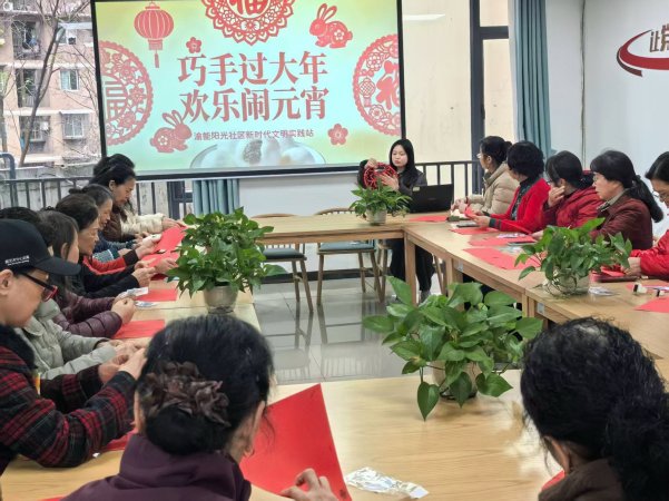 一把剪刀,一张红纸,剪出浓浓年味。东康社区里,居民们在志愿者的带领下巧手制花,将元宵“团圆”的美好寓意折进花瓣、揉进指尖。雨花社区老少围坐,非遗传承人讲述元宵往事,孩子们学着搓汤圆、做手作,在代际互动中感受民俗的温度。渝能阳光社区的剪纸课堂上,生肖马、红灯笼、胖汤圆跃然纸上,居民们在“四角剪”“五角剪”的技法中,剪出了对传统文化的热爱。