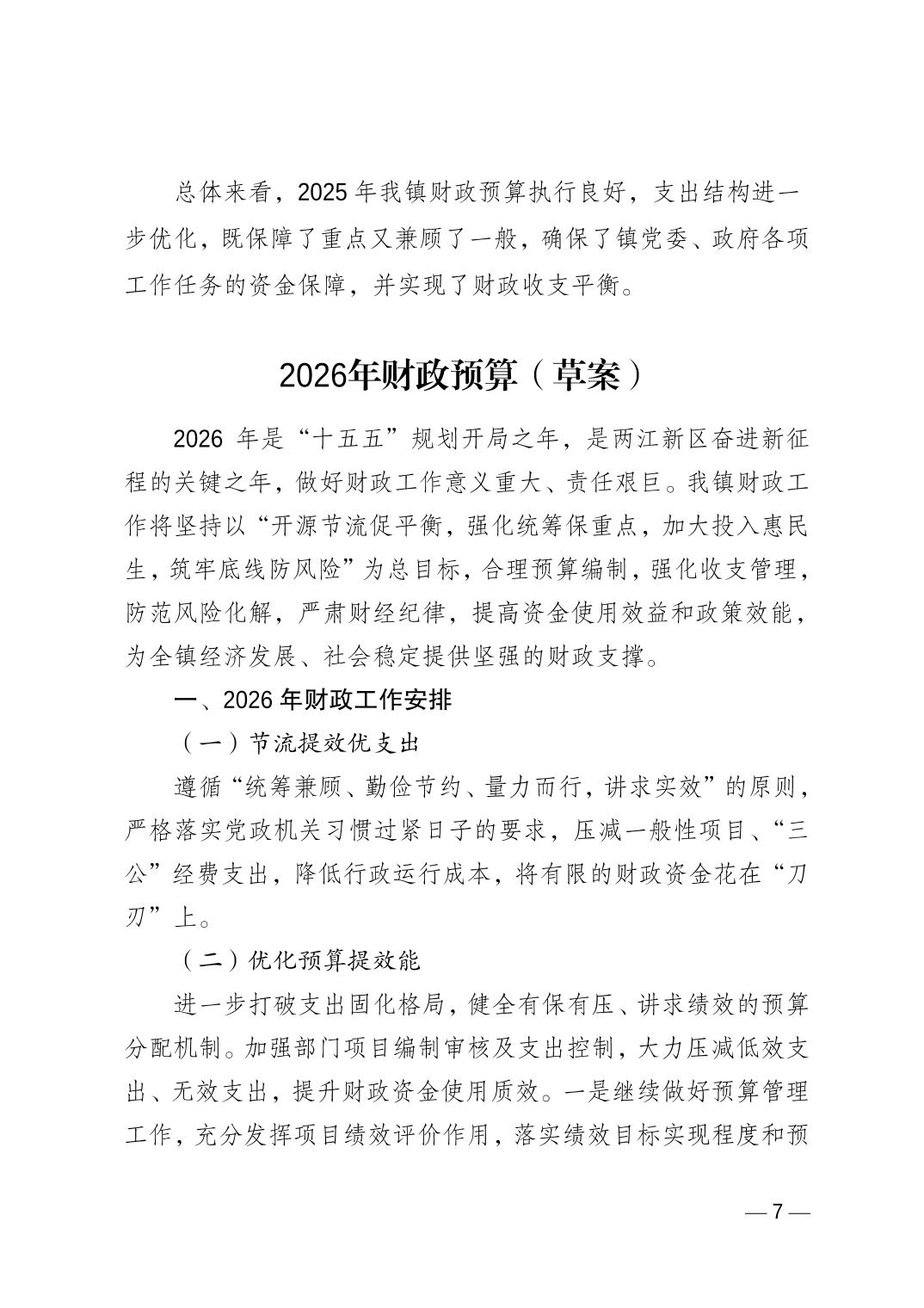 2025年财政预算执行情况和2026年财政预算(草案)的报告(2026.01.29预算公开版).pdf 重庆市两江新区玉峰山镇2026年政府预算编制情况补充说明(万元).doc 重庆市两江新区玉峰山镇2026年政府预算收支公开表 - 副本.xls