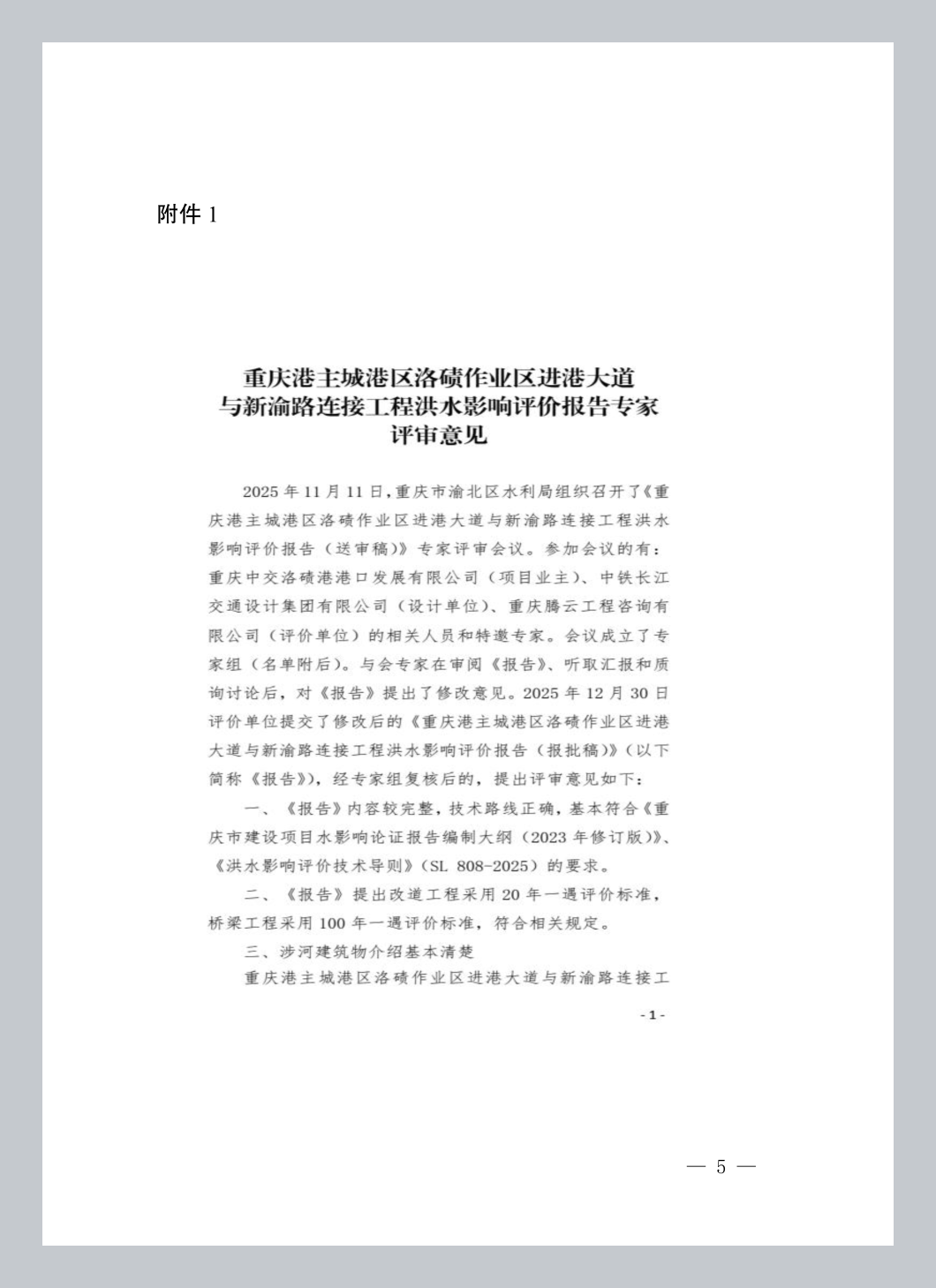 你单位报送的《重庆港主城港区洛碛作业区进港大道与新渝路连接工程洪水影响评价报告》(以下简称《报告》)收悉。《报告》编制单位(重庆腾云工程咨询有限公司)按专家审查意见进行了修改,于2026年1月12日向我局报送了《报告》报批稿,根据《行政许可法》第三十八条、《水行政许可实施办法》第三十二条第一项规定和专家审查意见,现对该《报告》批复如下。