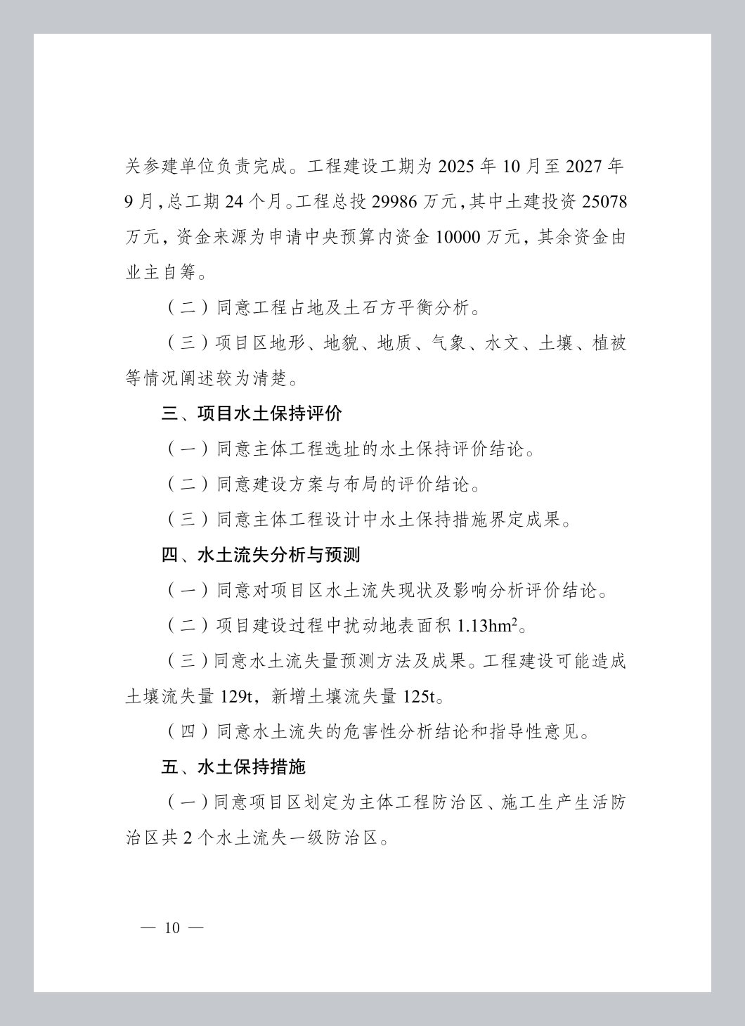 (二)同意项目水土流失防治标准执行等级为西南紫色土区建设类项目一级防治标准。水土流失防治责任范围确定合理,面积为1.18hm2。
