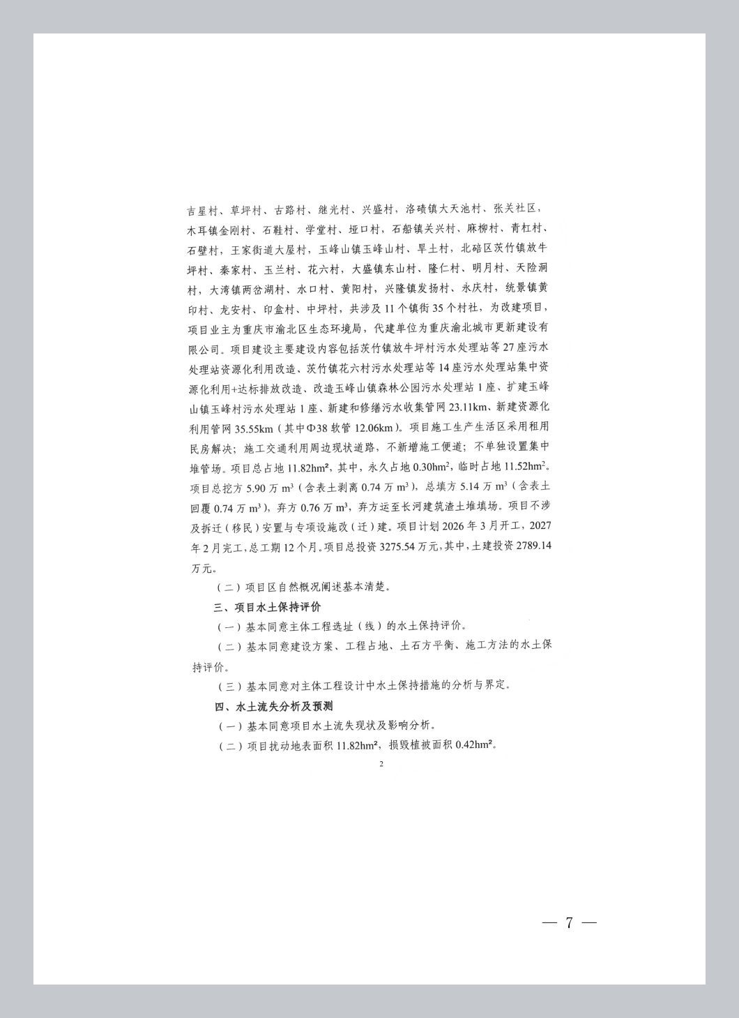 你单位提交的渝北区农村生活污水整治项目水土保持方案审批申请(项目代码:2504-500112-04-01-325021)和《渝北区农村生活污水整治项目水土保持方案报告书》收悉。经审查,该申请符合法定条件,根据《中华人民共和国行政许可法》第三十八条第一款、《水行政许可实施办法》第三十二条第一项规定,决定准予行政许可。