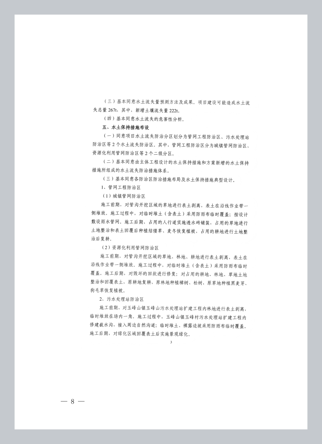 (八)严格按照批准的水土保持方案和后续设计落实各项水土保持措施,合理安排施工时序和水土保持措施实施进度,严格控制施工期间水土流失。
