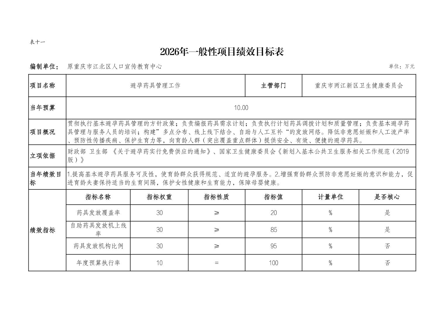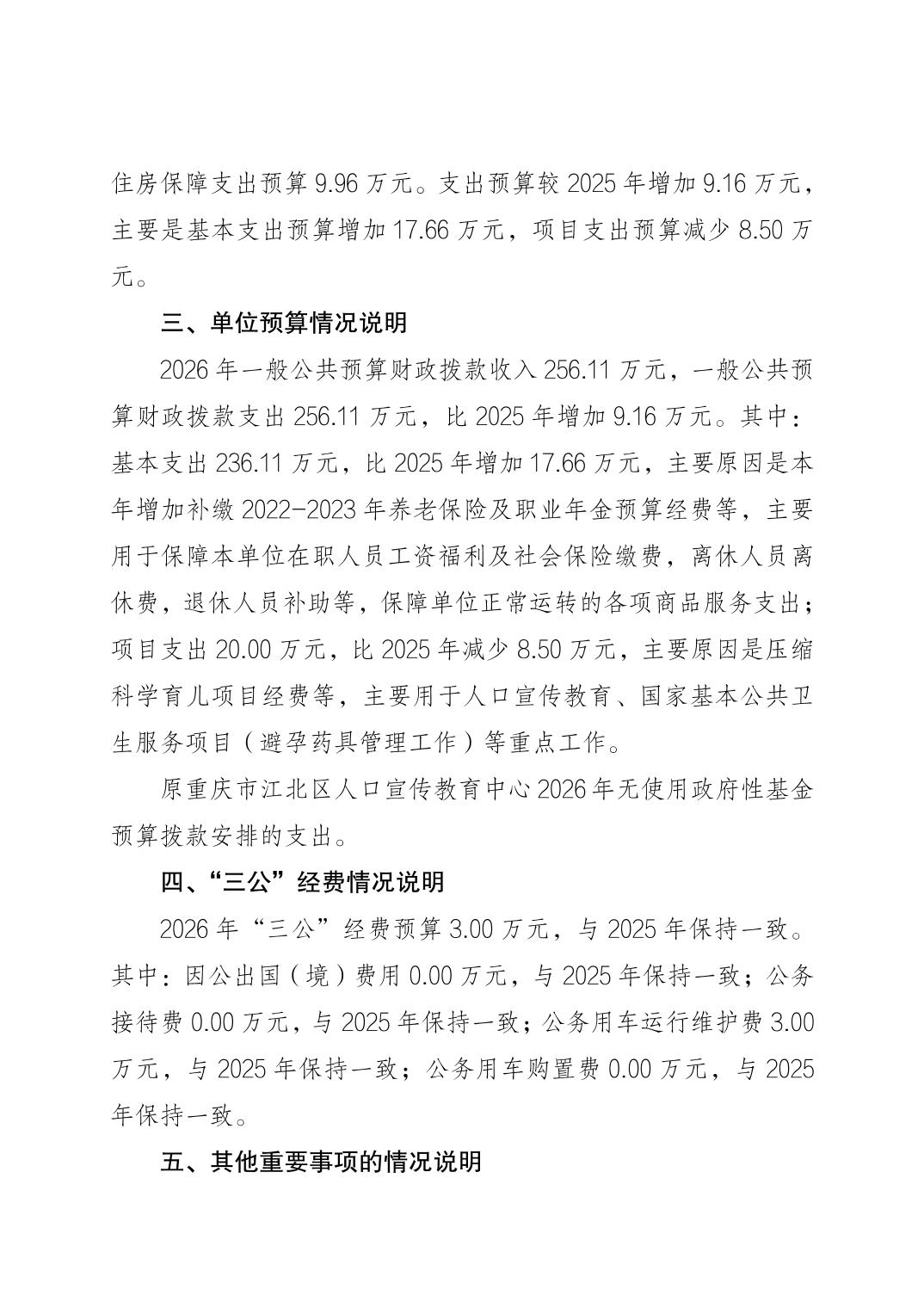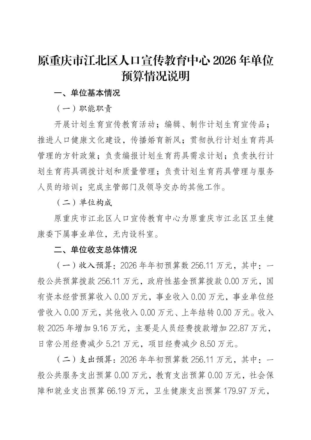 原重庆市江北区人口宣传教育中心2026年单位预算情况说明