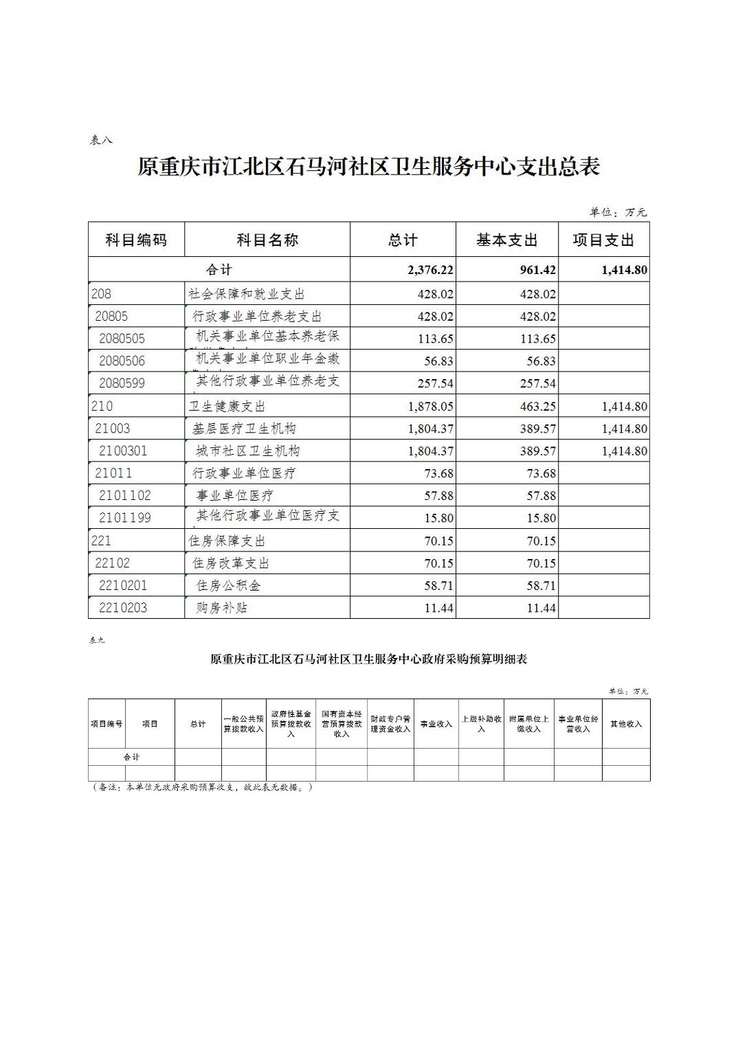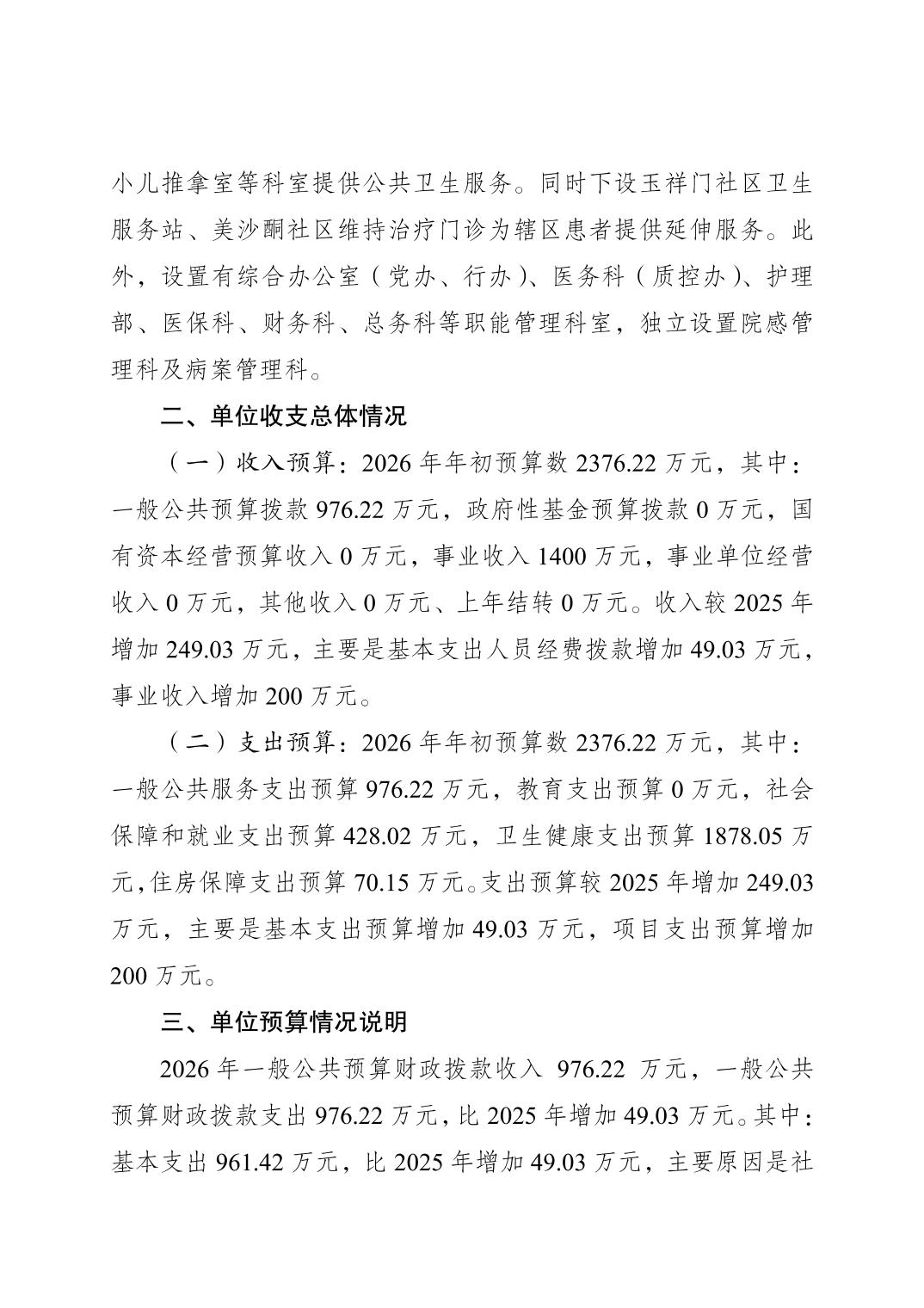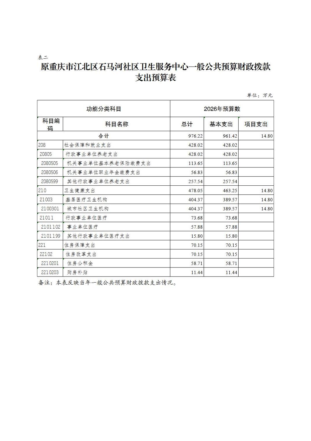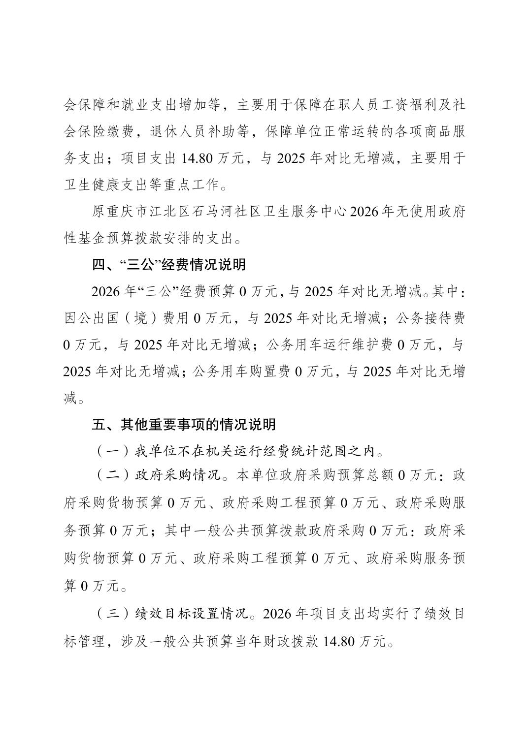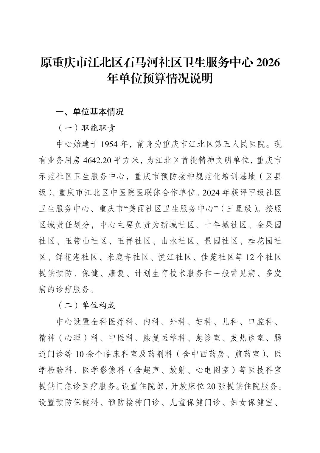 原重庆市江北区石马河社区卫生服务中心2026年单位预算情况说明