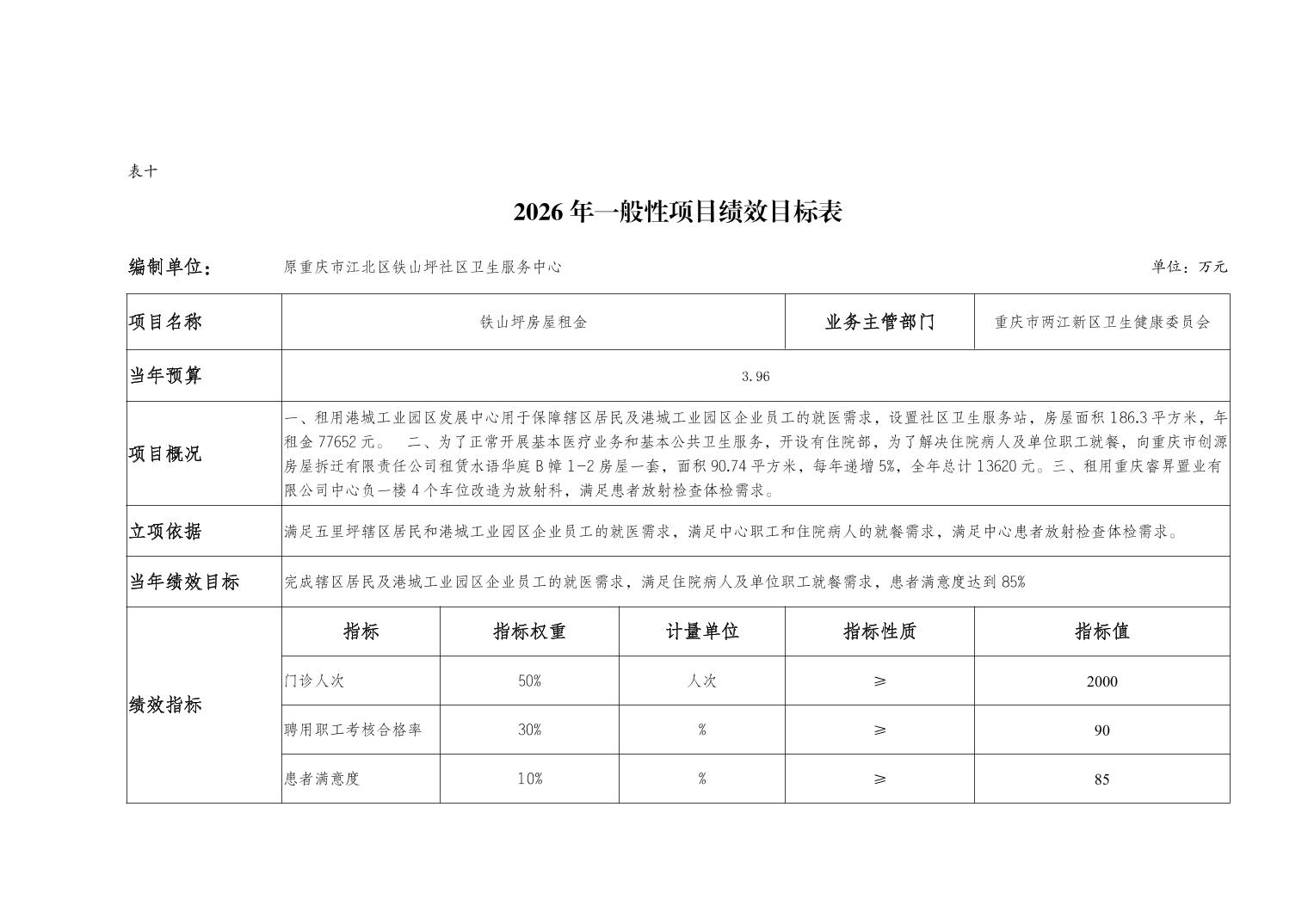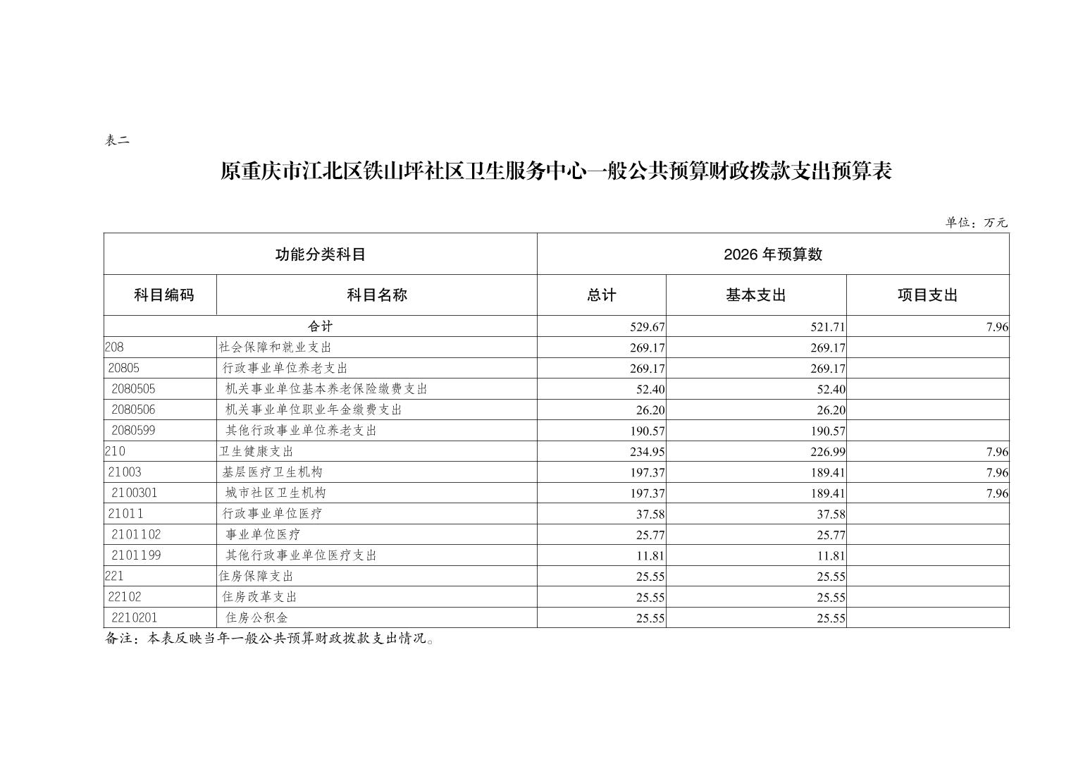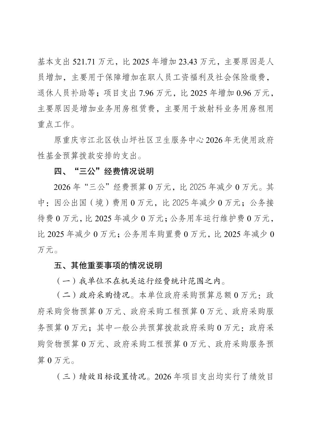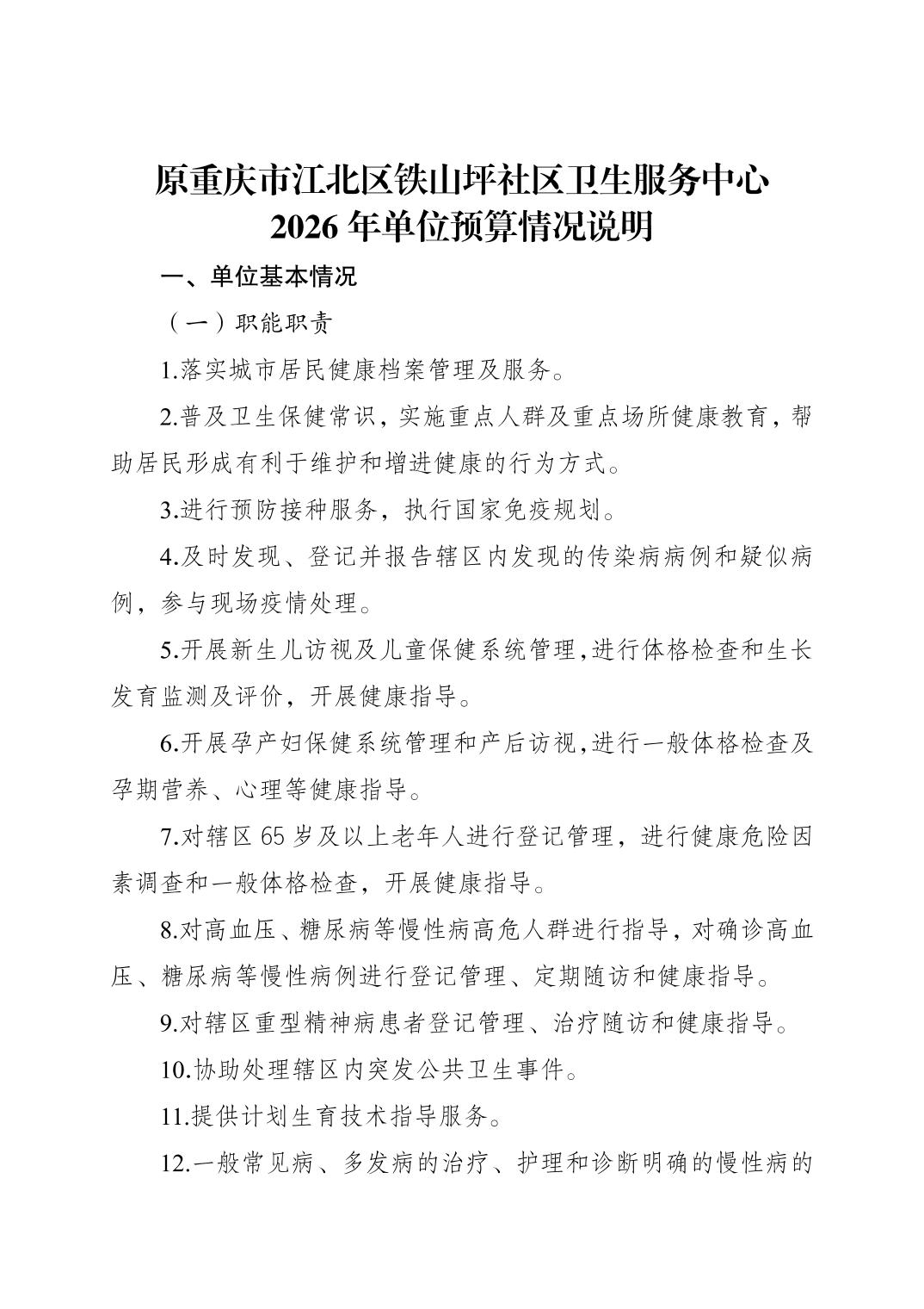 原重庆市江北区铁山坪社区卫生服务中心2026年单位预算情况说明