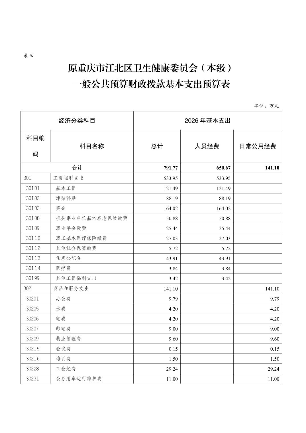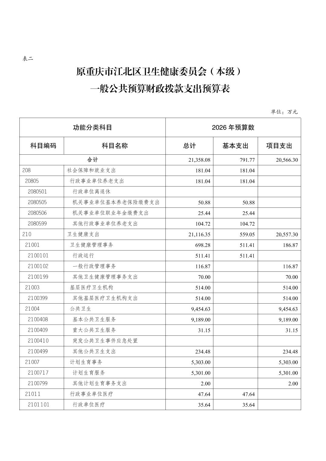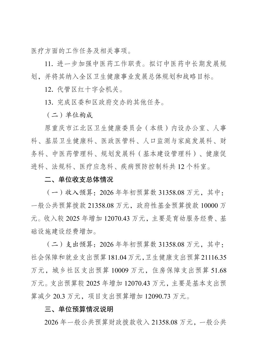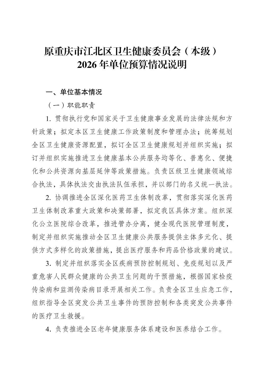 原重庆市江北区卫生健康委员会(本级)2026年单位预算情况说明