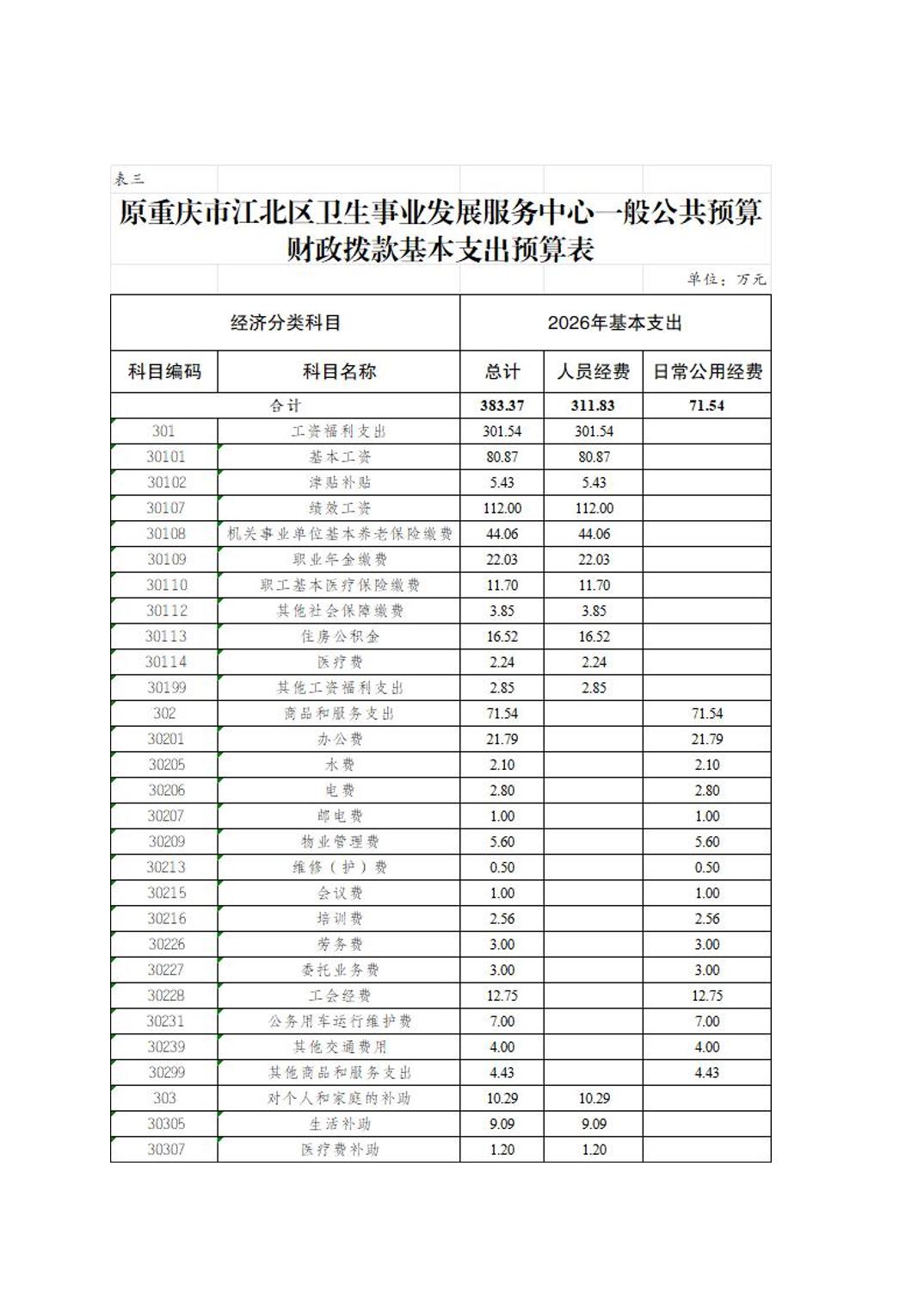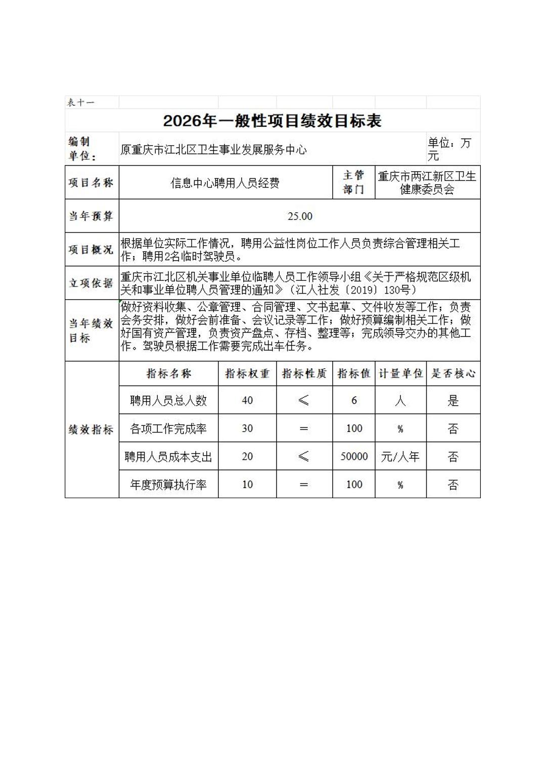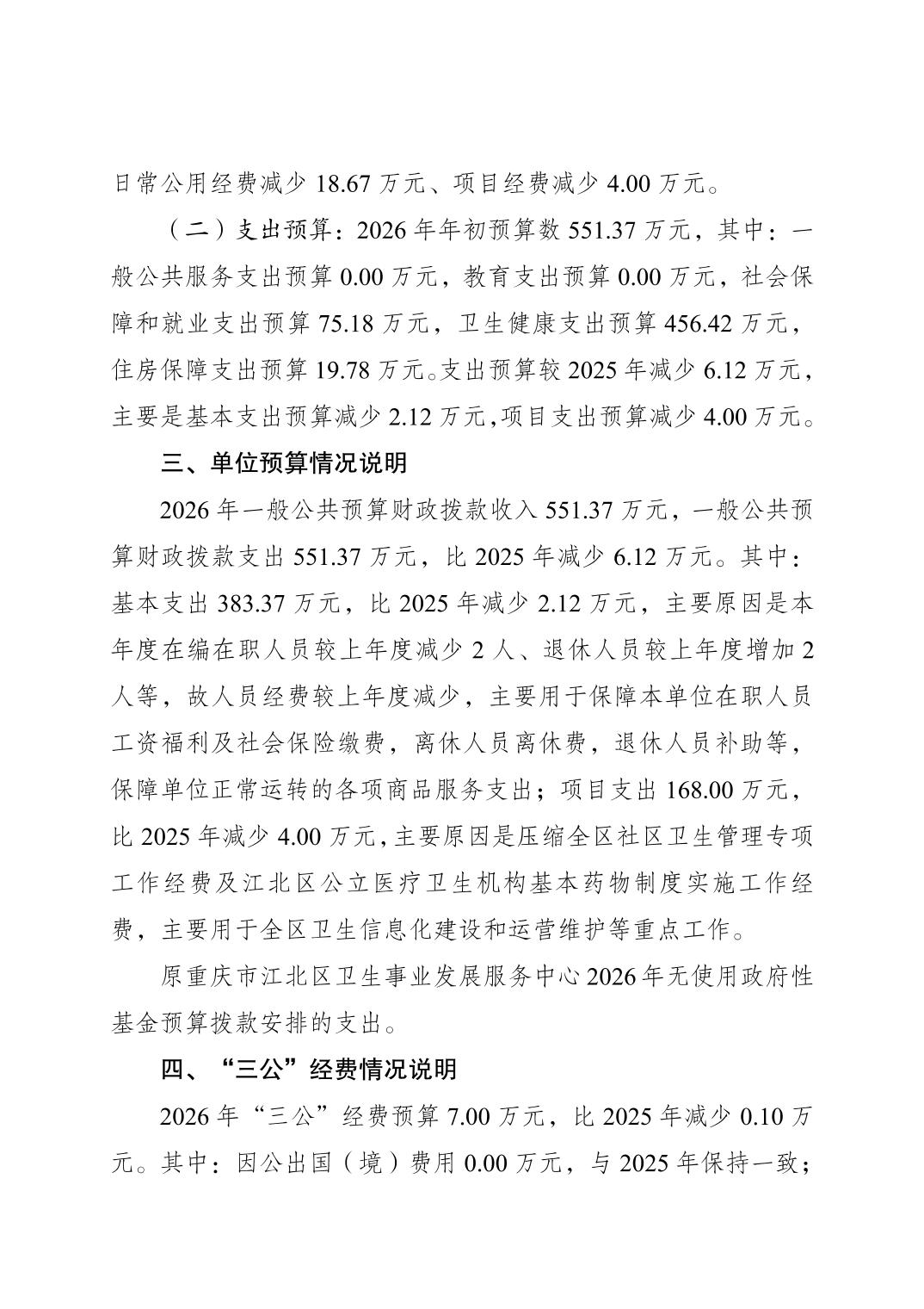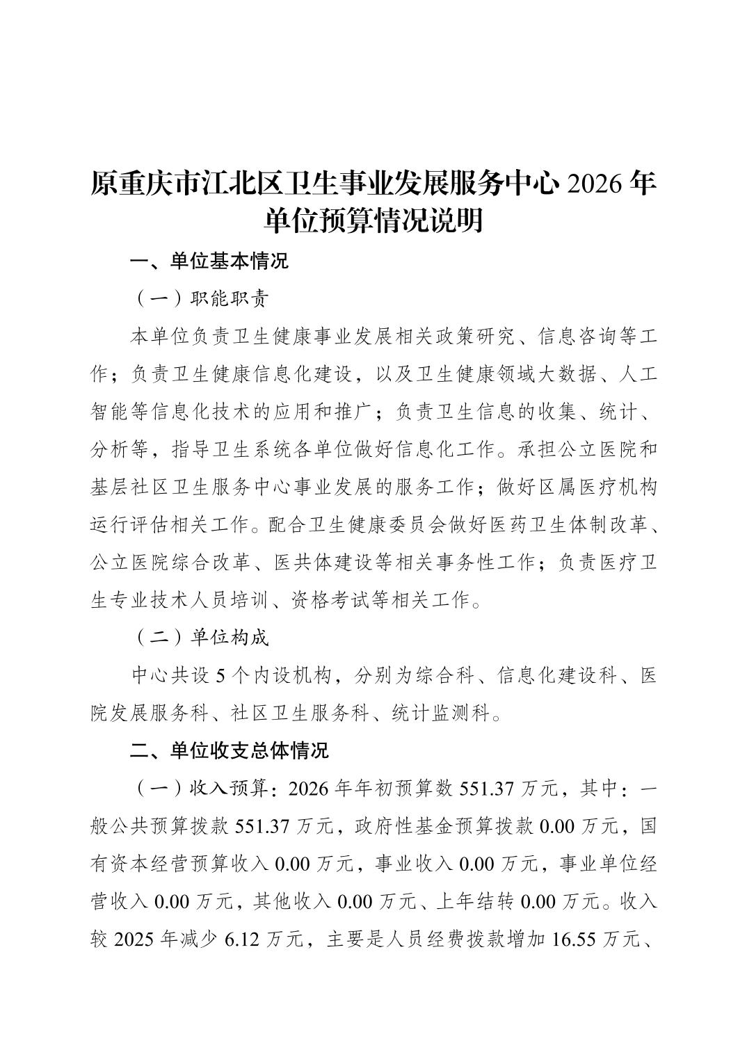 原重庆市江北区卫生事业发展服务中心2026年单位预算情况说明