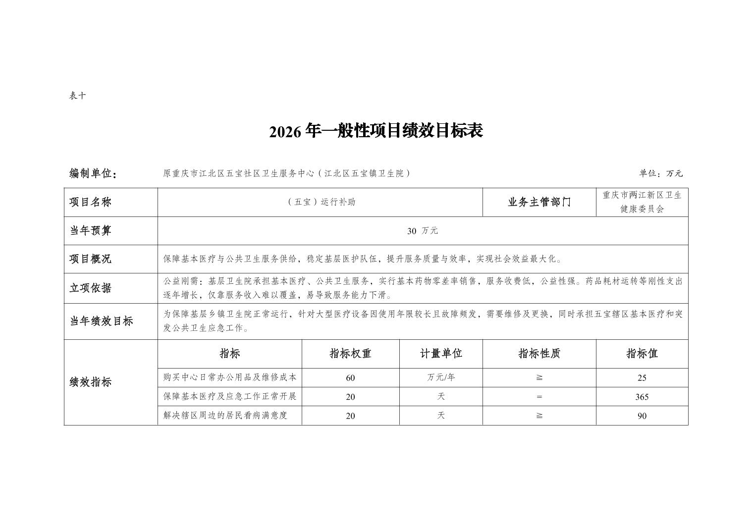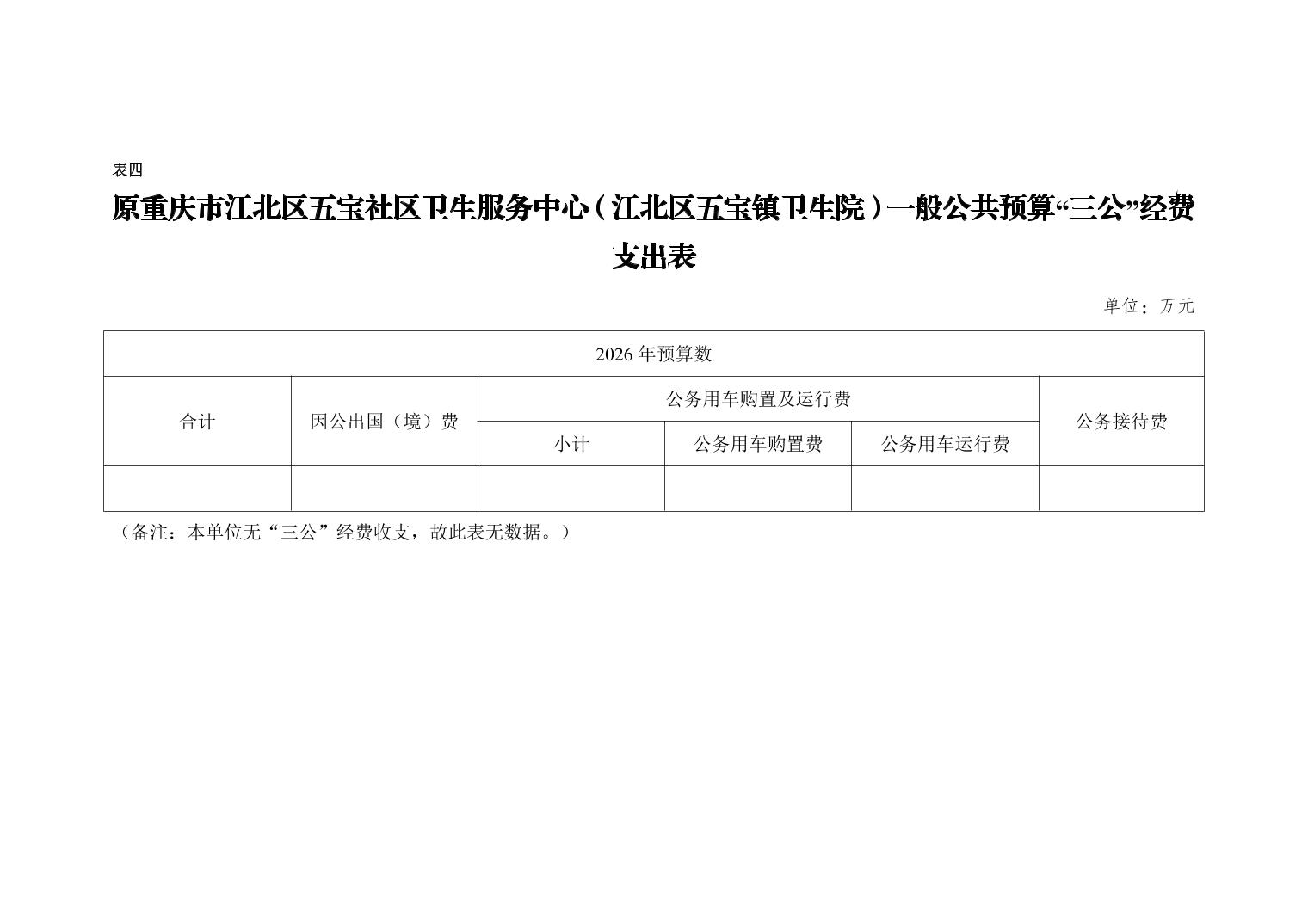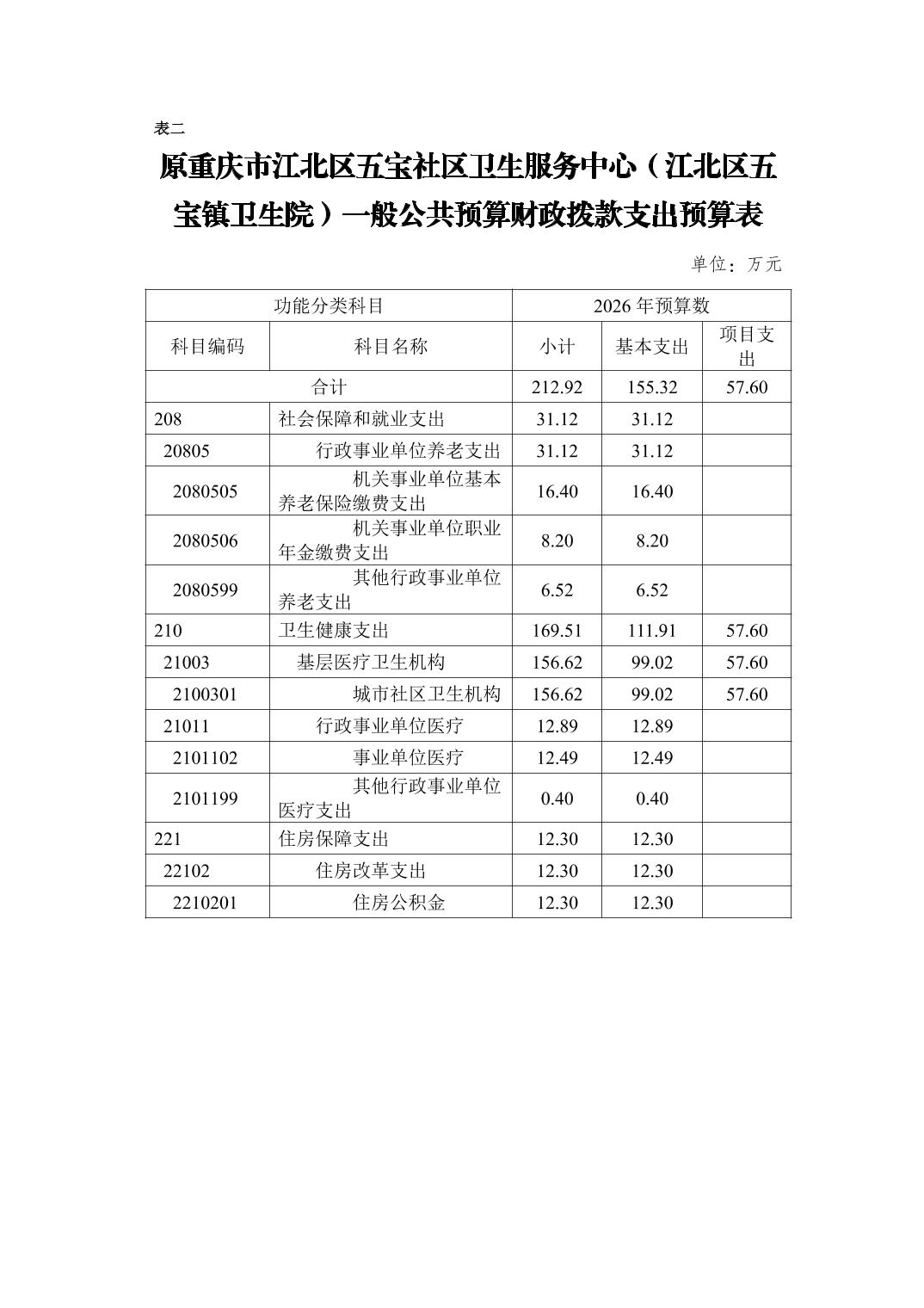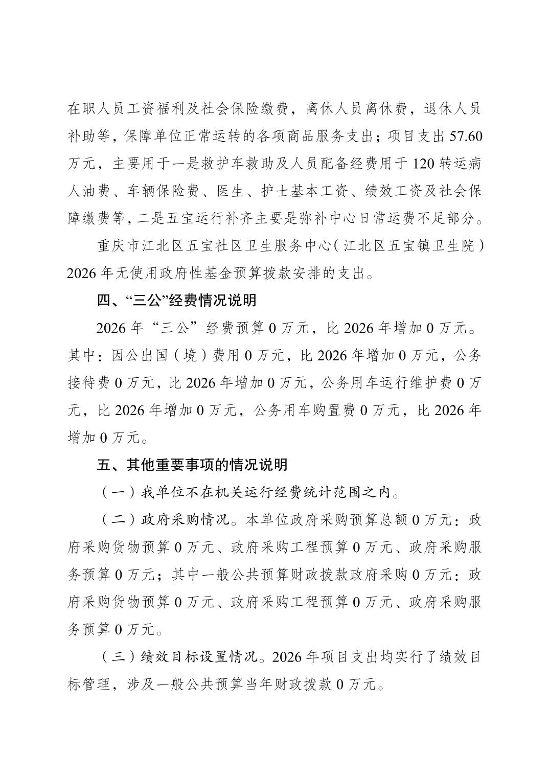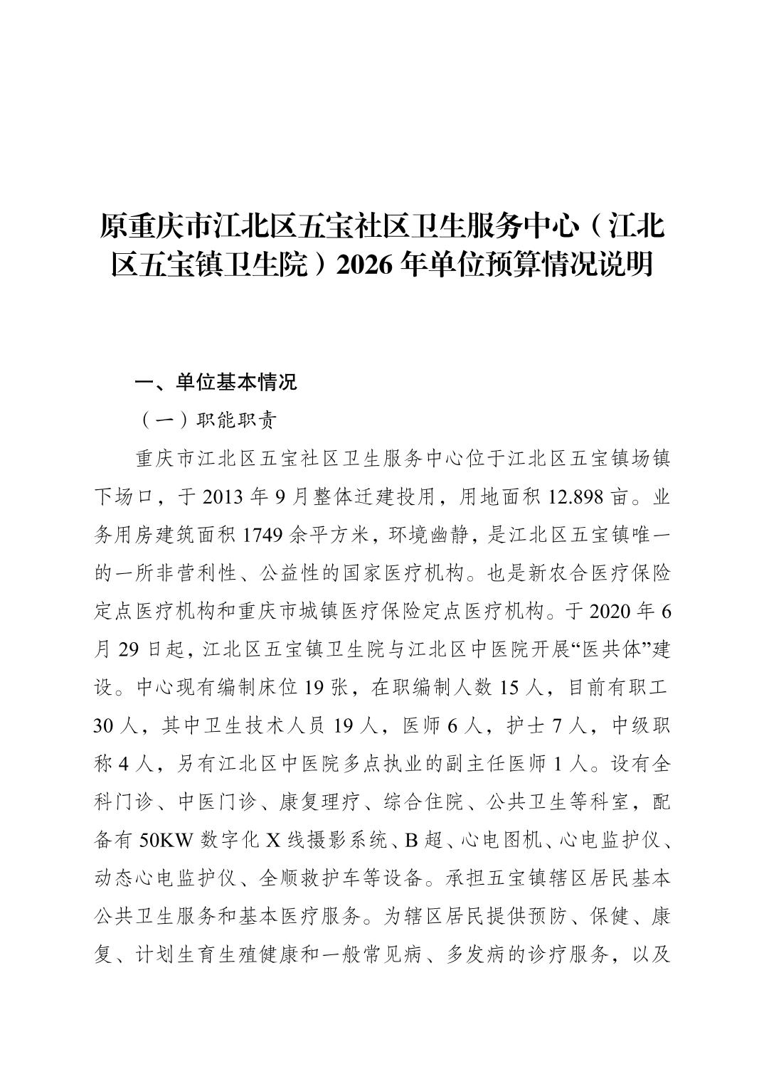 原重庆市江北区五宝社区卫生服务中心(江北区五宝镇卫生院)2026年单位预算情况说明