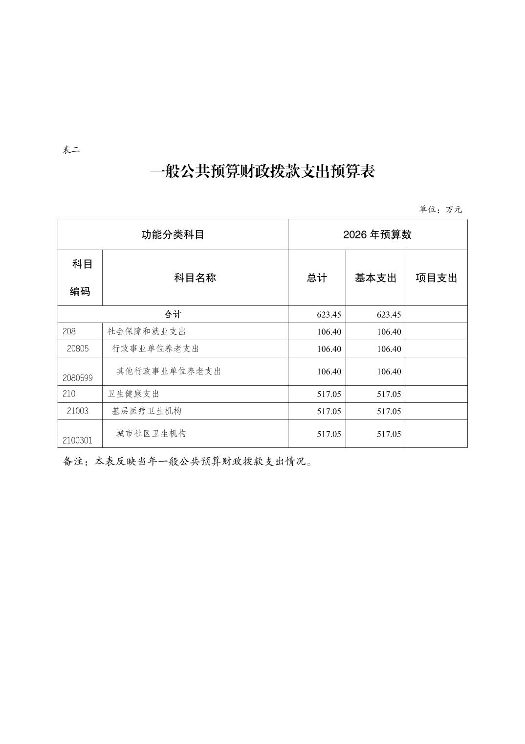原重庆市北碚区复兴街道社区卫生服务中心2026年单位预算情况说明