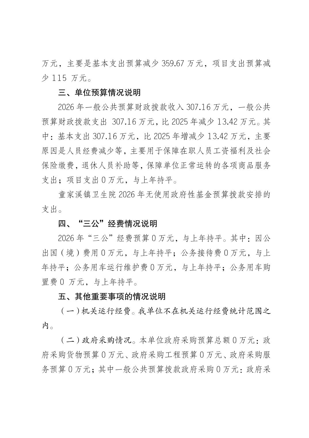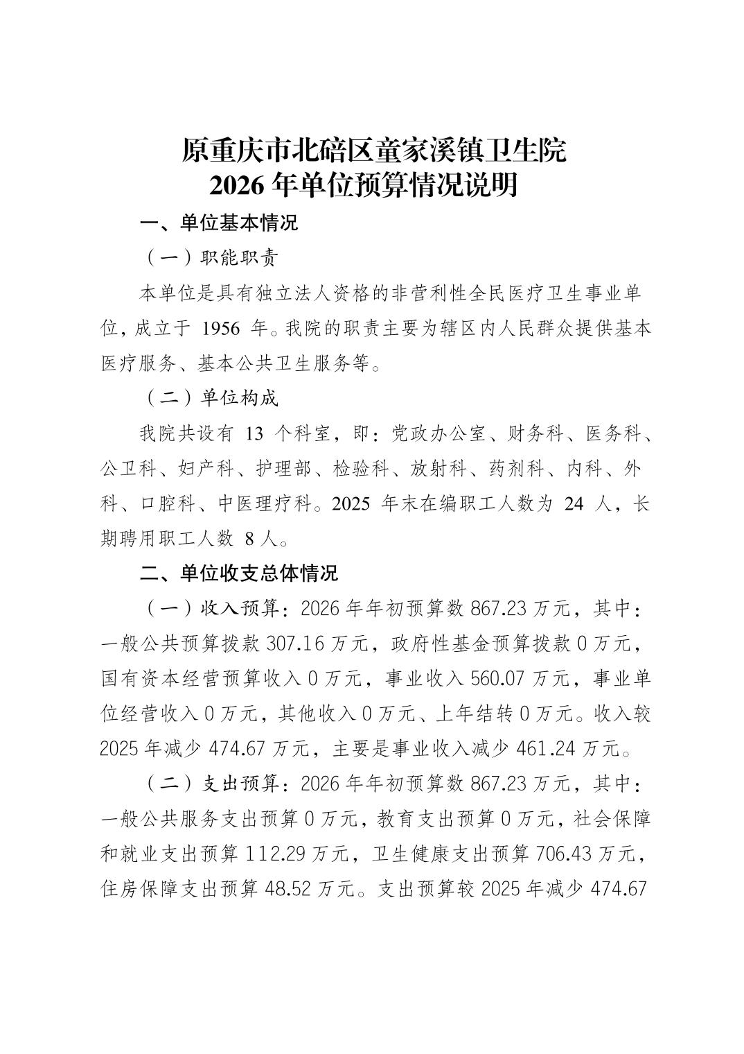 原重庆市北碚区童家溪镇卫生院2026年单位预算情况说明