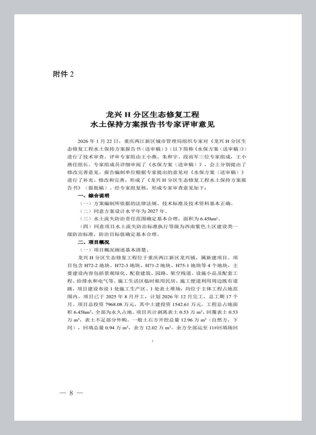2.龙兴H分区生态修复工程水土保持方案报告书专家评审意见