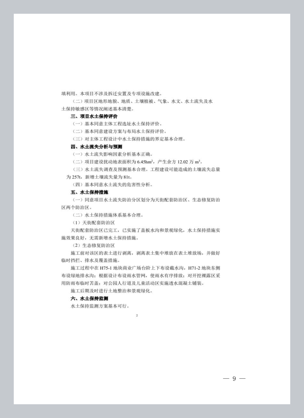 (六)基本同意水土流失防治分区和分区防治措施安排。