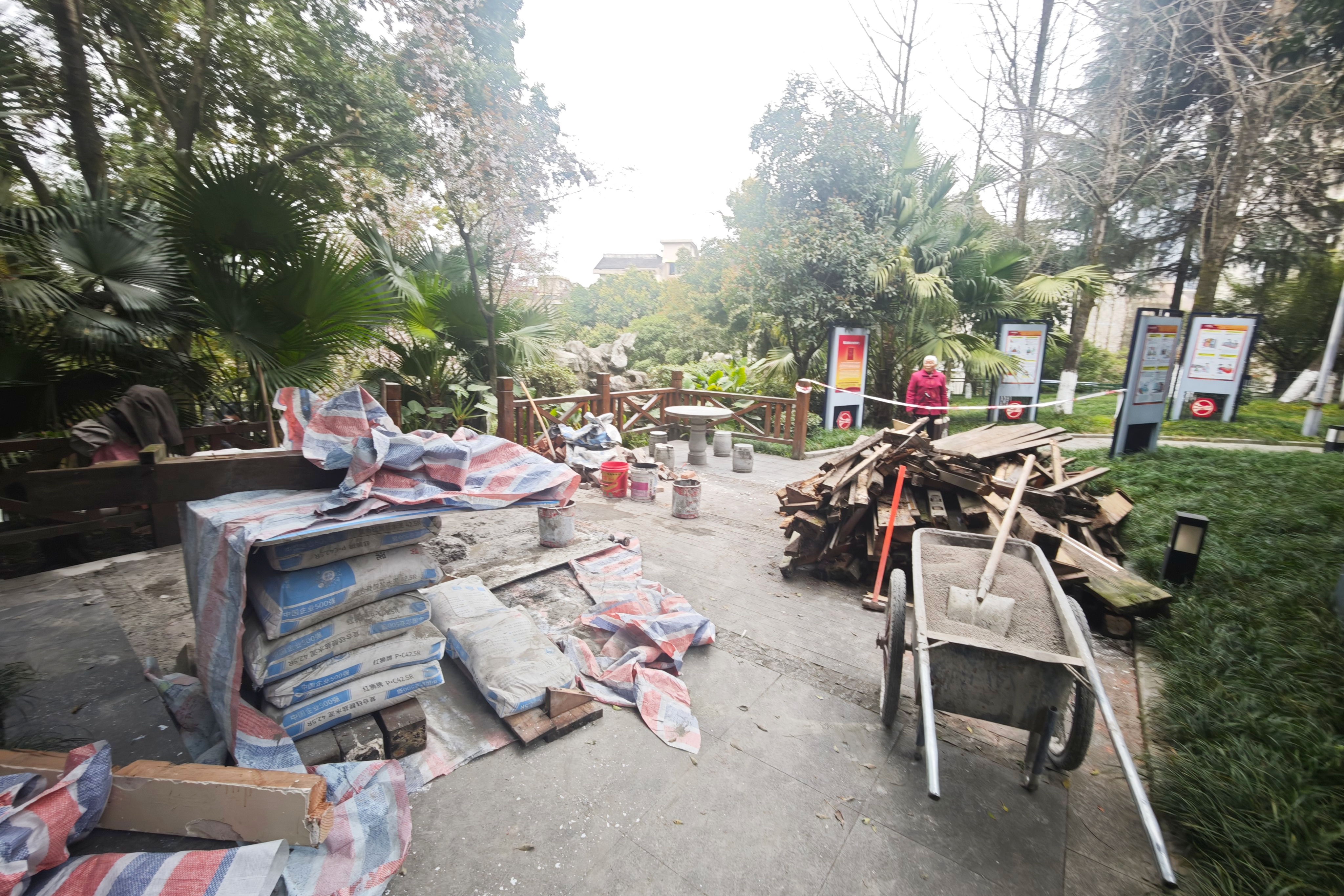 公园楼梯整治现场。