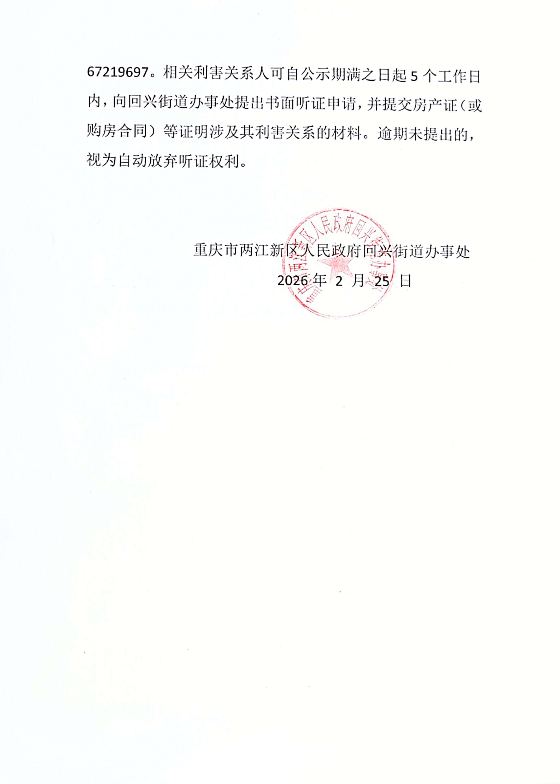 重庆市两江新区人民政府回兴街道办事处