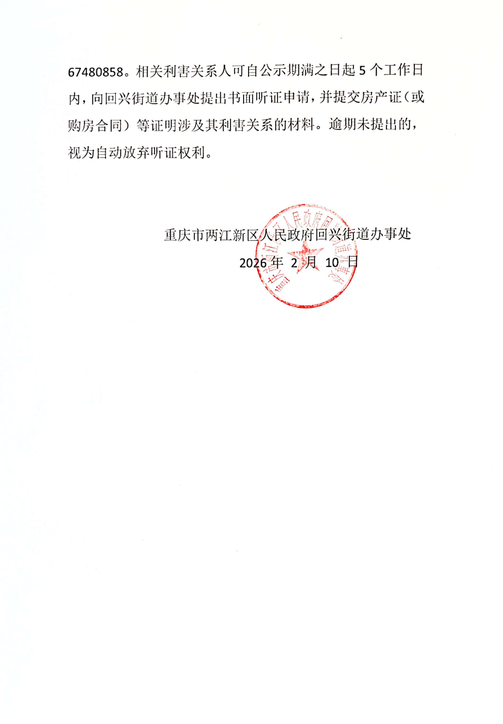重庆市两江新区人民政府回兴街道办事处