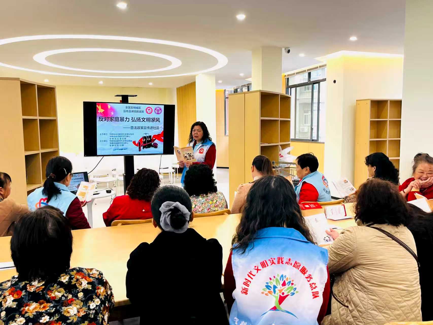 为切实维护妇女儿童合法权益,有效预防和制止家庭暴力,大力弘扬文明家风,华新街街道妇联走进华新社区新时代文明实践站以“反对家庭暴力、弘扬文明家风”为主题,组织开展反家暴普法宣传进社区活动,将法治知识、维权服务与家风建设送到居民身边,营造平安和谐、文明向善的社区氛围。