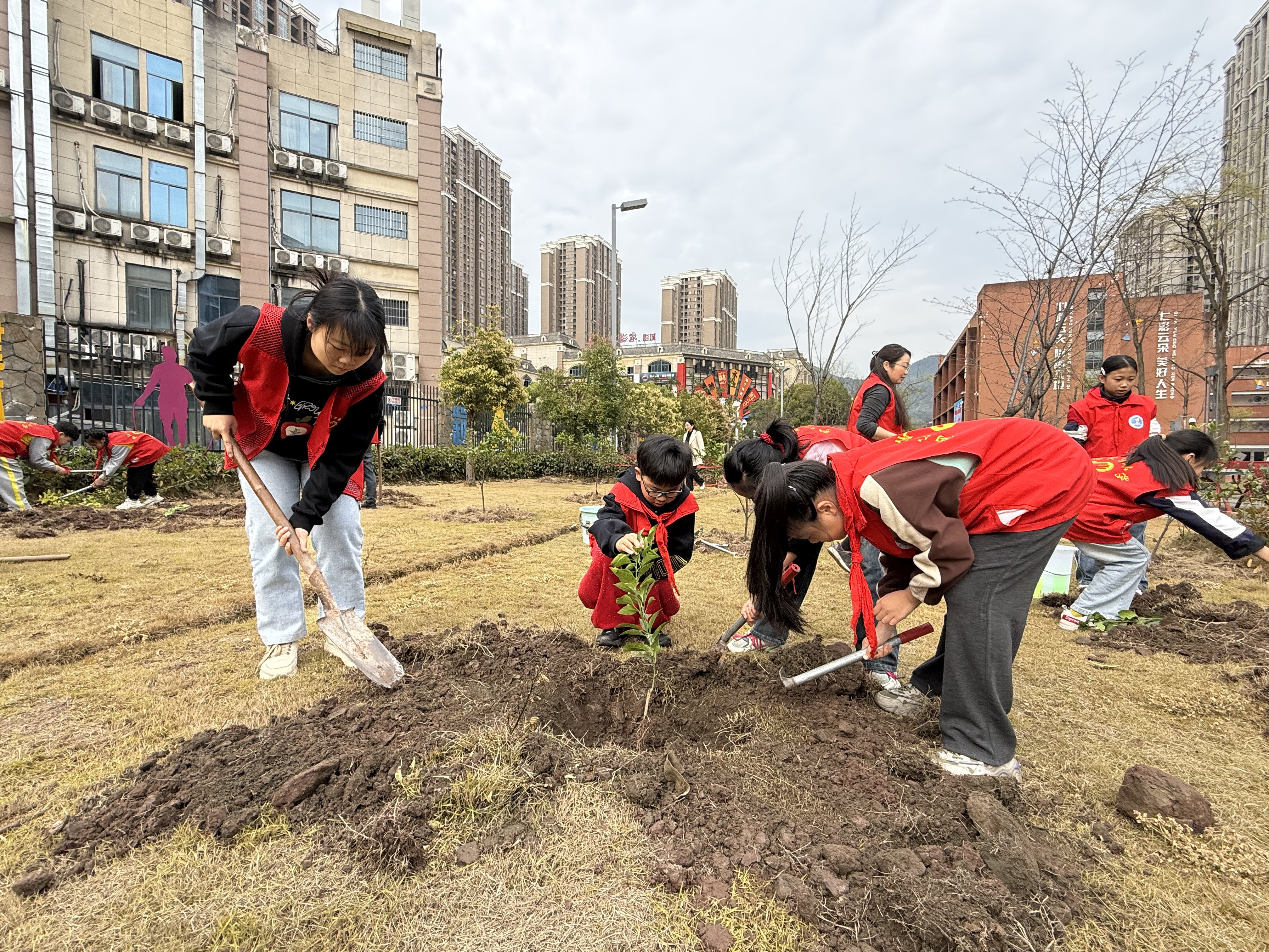 2026年3月12日,水土街道万寿、万兴社区联合云顶小学开展“植绿守初心,党员当先锋”主题植树活动,以党建引领生态文明建设,用实际行动为家园添绿。