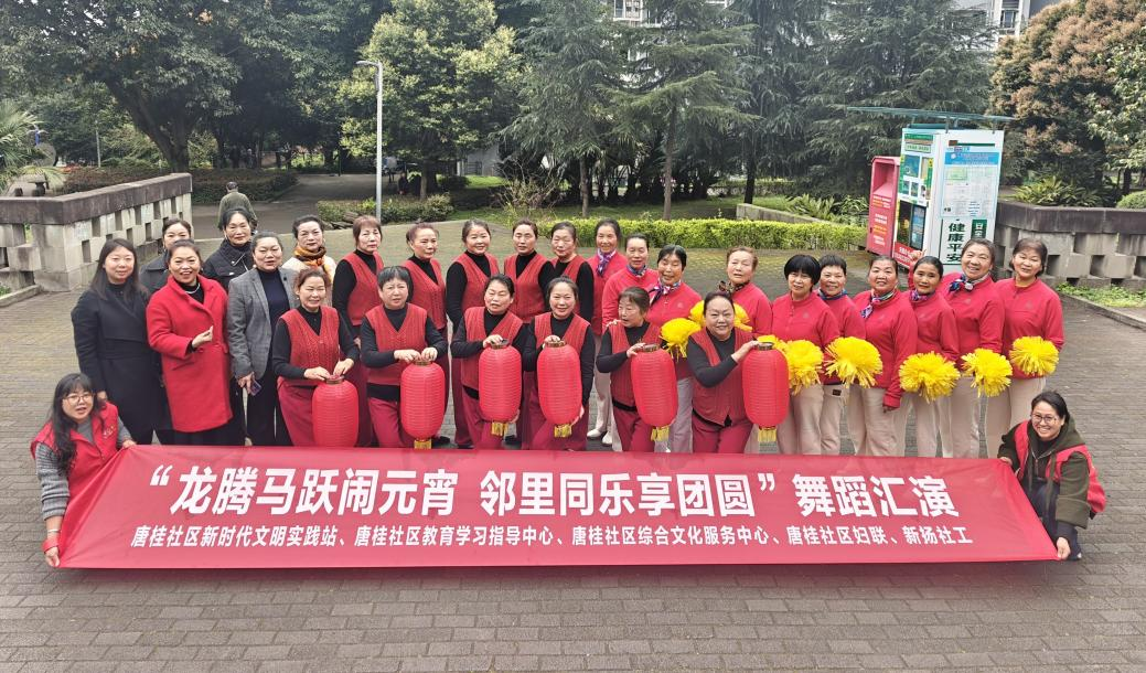 唐桂社区开展“龙腾马跃闹元宵・邻里同乐享团圆”活动,搭起百姓舞台,上演文艺盛宴。文艺汇演在激昂的音乐中拉开帷幕,辖区文艺队伍轮番登场,健身舞《中国大舞台,幸福跳起来》、民族舞《我的祖国》等节目精彩上演,赢得台下阵阵掌声。灯谜区与文艺汇演交相辉映,居民们在欣赏精彩演出的间隙,参与猜灯谜互动,传统民俗与文艺展演碰撞出别样火花。整场活动既展现了辖区居民积极向上的精神风貌,又拉近了邻里距离,营造出喜庆祥和的节日氛围。