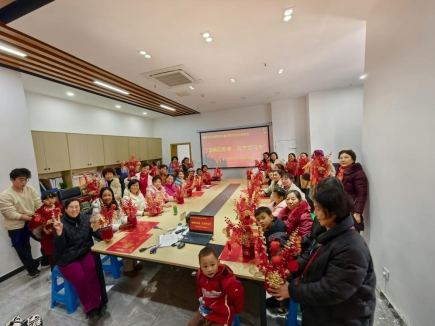 居民们兴致盎然,在老师的指导下发挥创意,将各色花材精心搭配,调整角度、错落排布,原本零散的花枝逐渐变成一盆盆错落有致、喜气盈盈的新春花艺作品。活动现场欢声笑语不断,大家互相交流心得、展示作品,分享创作的喜悦,不少居民拿着自己的作品拍照留念,脸上洋溢着幸福的笑容。