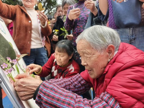 “你看我选的这片冬青叶,圆圆的很光滑!”3月12日下午,鱼嘴镇棠锦园小区笑声不断,由棠富园社区新时代文明实践站组织的植树节主题活动热闹开场。30余名头发花白的“老顽童”们围在签到处,写下祝福,举着叶子对着镜头开心拍照——“咔嚓”,一张张笑脸被定格。